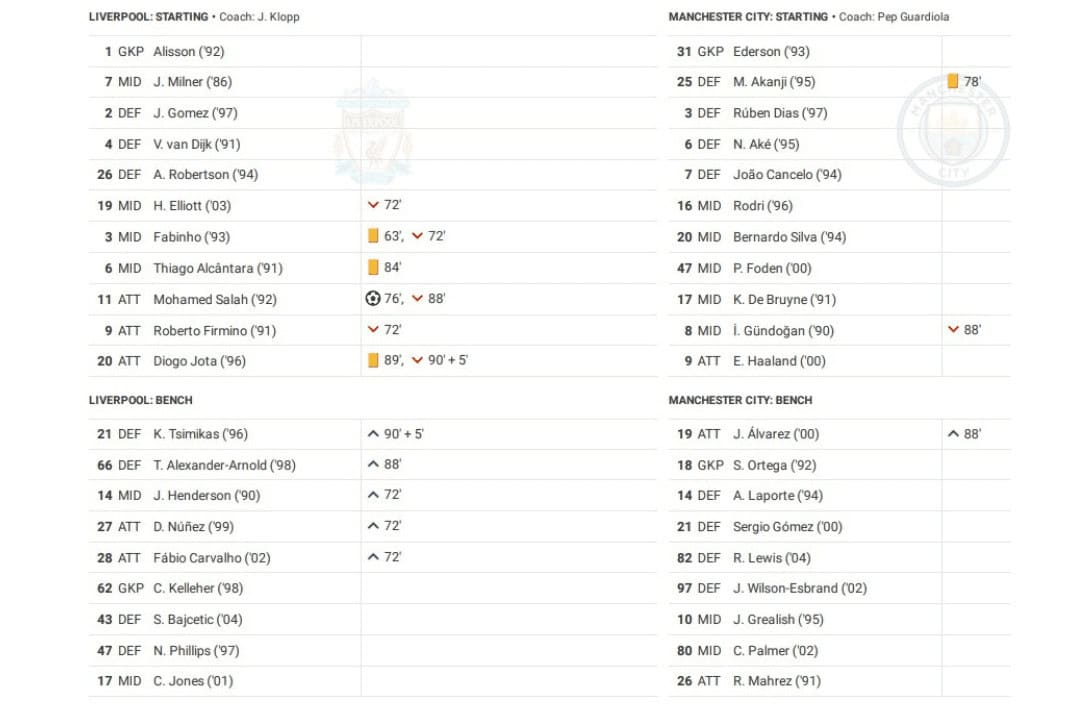 Sunday saw Liverpool vs Manchester City in the Premier League.