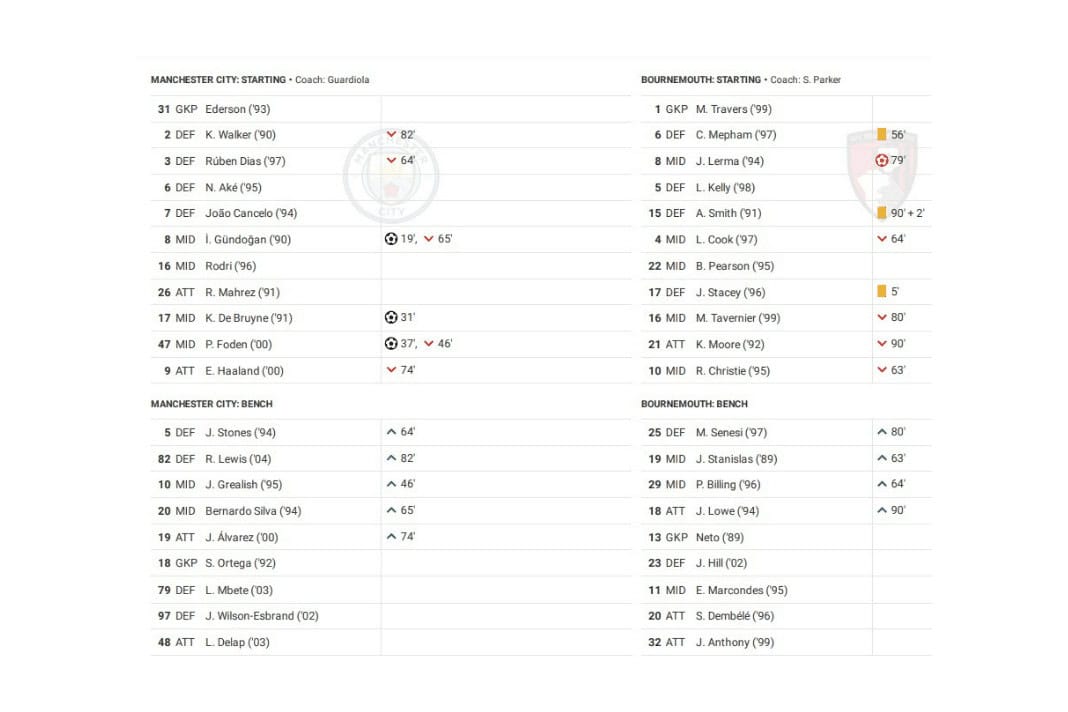 Saturday saw Man City vs Bournemouth in the Premier League.