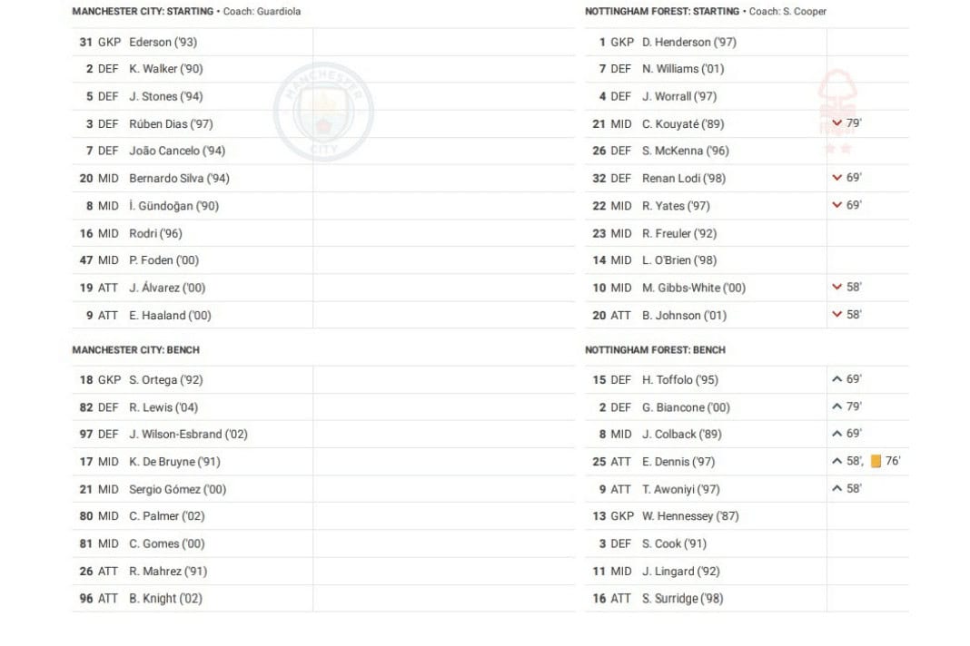 Wednesday saw Man City vs Forest in the Premier League.
