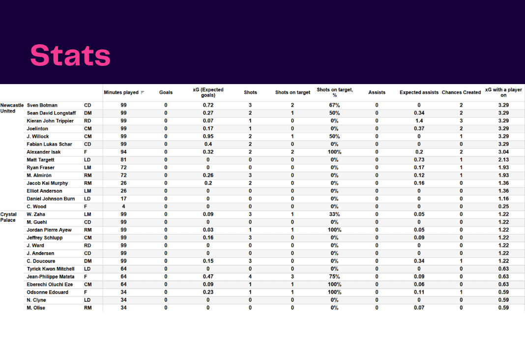 Premier League 2022/23: Newcastle vs Crystal Palace – data viz, stats and insights