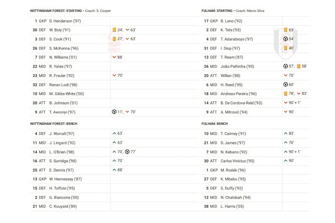 Friday night saw Nottingham Forest vs Fulham in the Premier League.