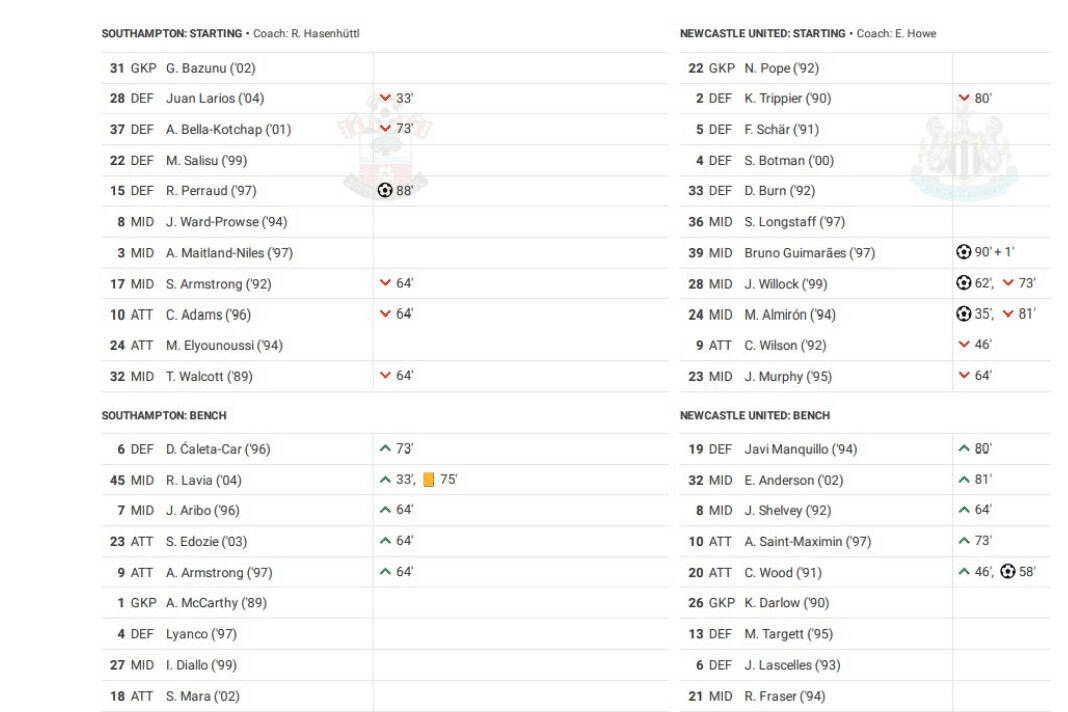 Sunday saw Southampton vs Newcastle United in the Premier League.