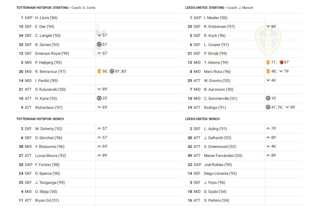 Saturday saw Tottenham vs Leeds United in the Premier League.