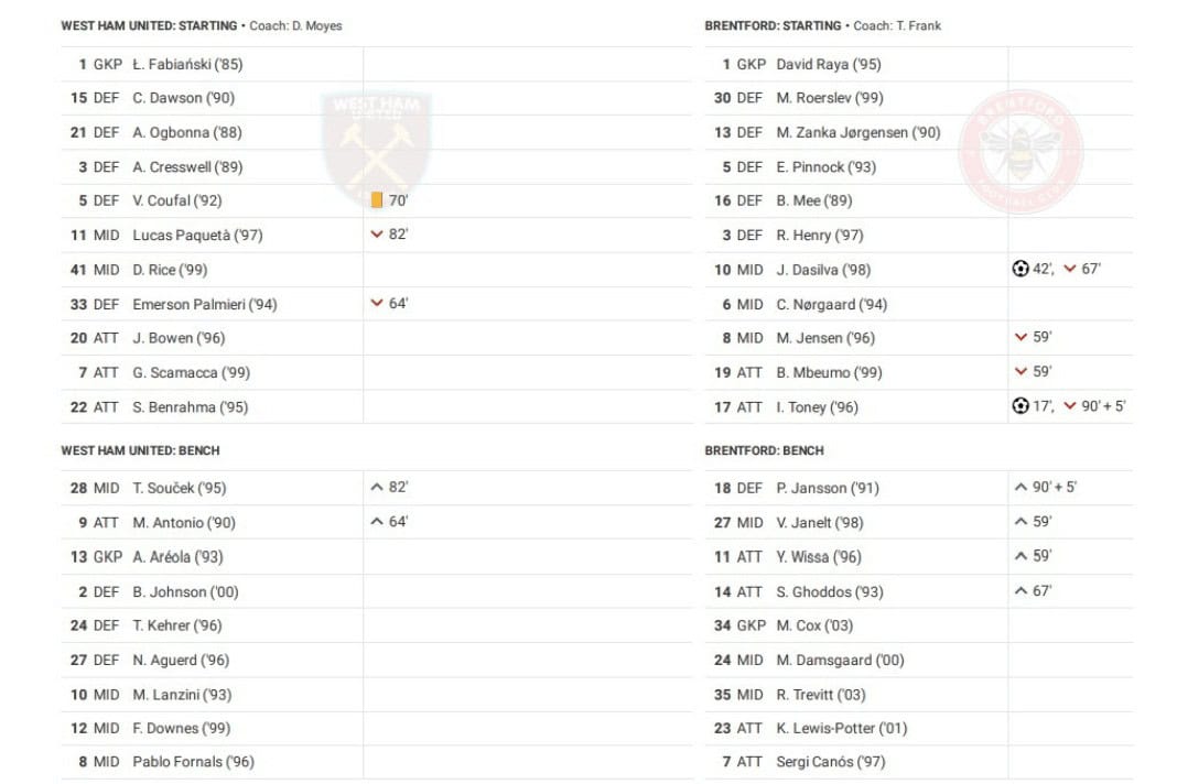 Friday saw West Ham vs Brentford in the Premier League.