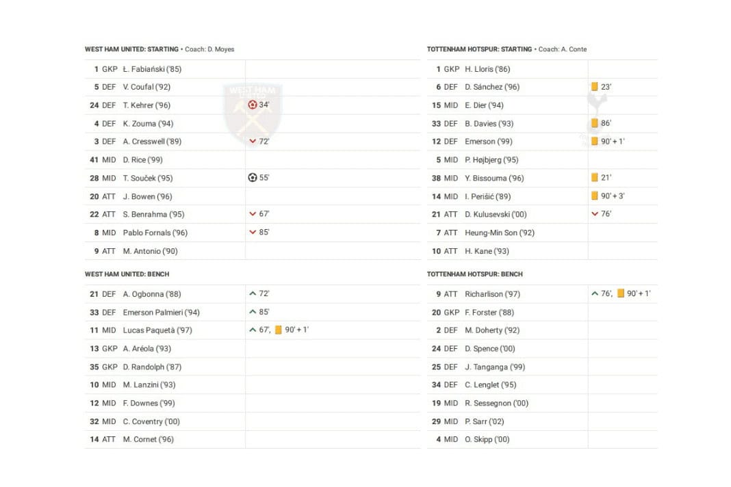 Wednesday saw West Ham vs Tottenham in the Premier League.