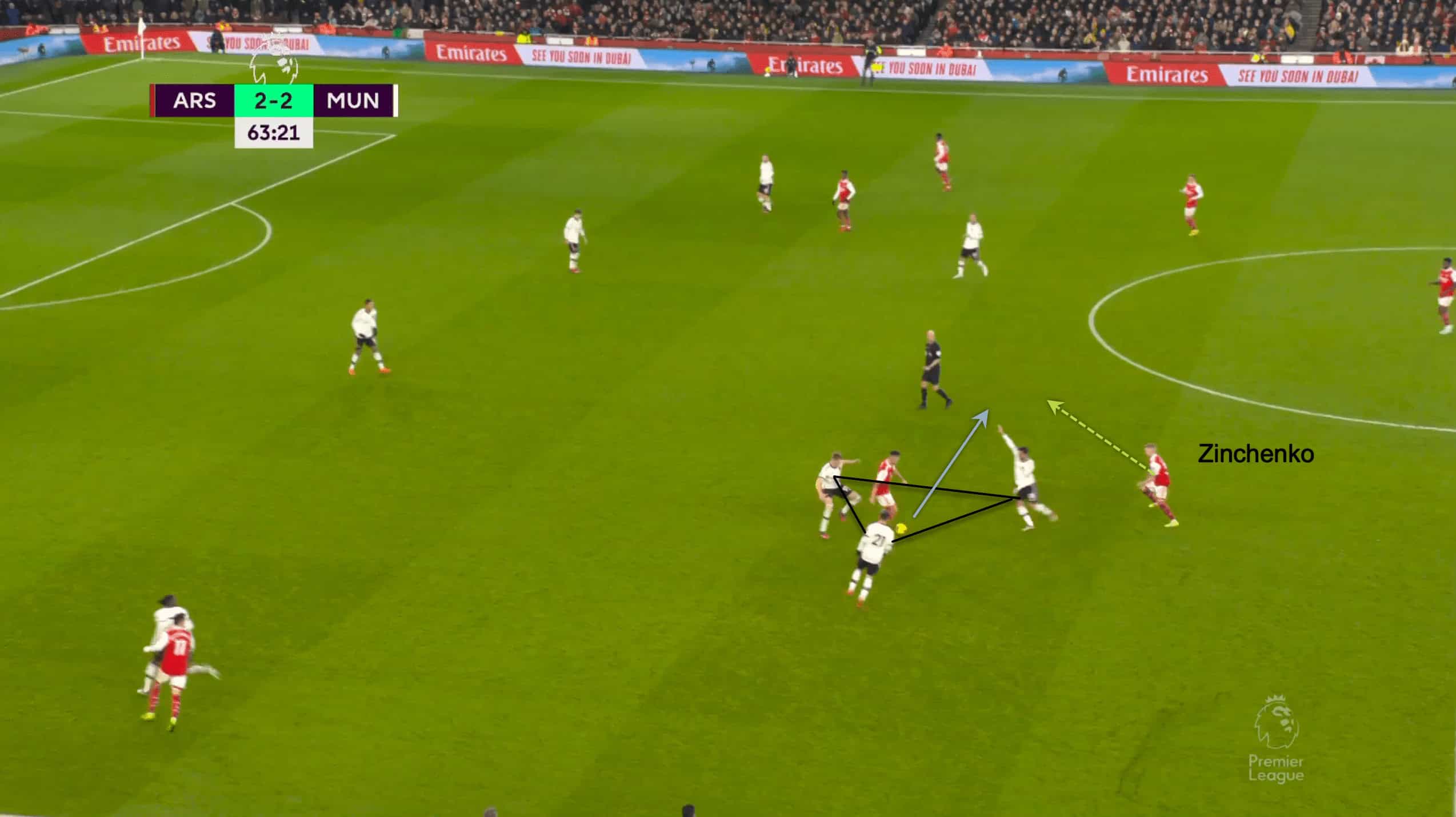 The successful exchange between Xhaka and Zinchenko was just part of the playmaking unit’s overall layout. They were able to switch positions and create a three-man midfield with Zinchenko and Xhaka going forward and Partey staying back.