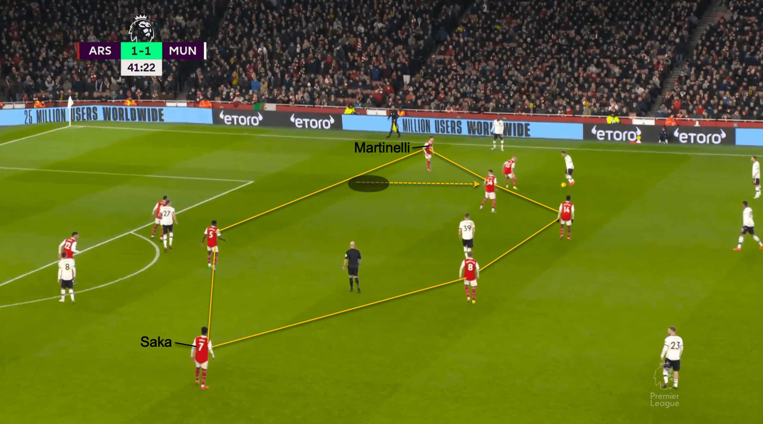 They were able to do everything Arsenal set their minds to. When Martinelli stepped inside to offer his hands, like in the below scene, Wan Bissaka was faced with a difficult choice.