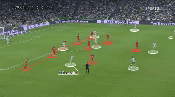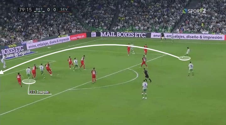 The 37-year-old is the ultimate cult hero at Betis as well as being an experienced attacking midfielder who has delivered consistently over his time in La Liga. Setién did not disappoint his home faithful and Joaquín replaced William Carvalho in the 75th minute to a fervent roar. With Sevilla now down to 10 men, Betis could now patiently build their attacks and push Sevilla back into their own third of the pitch instead of playing over a high press. Neither Betis nor that man Joaquín needed long to take advantage of the situation.