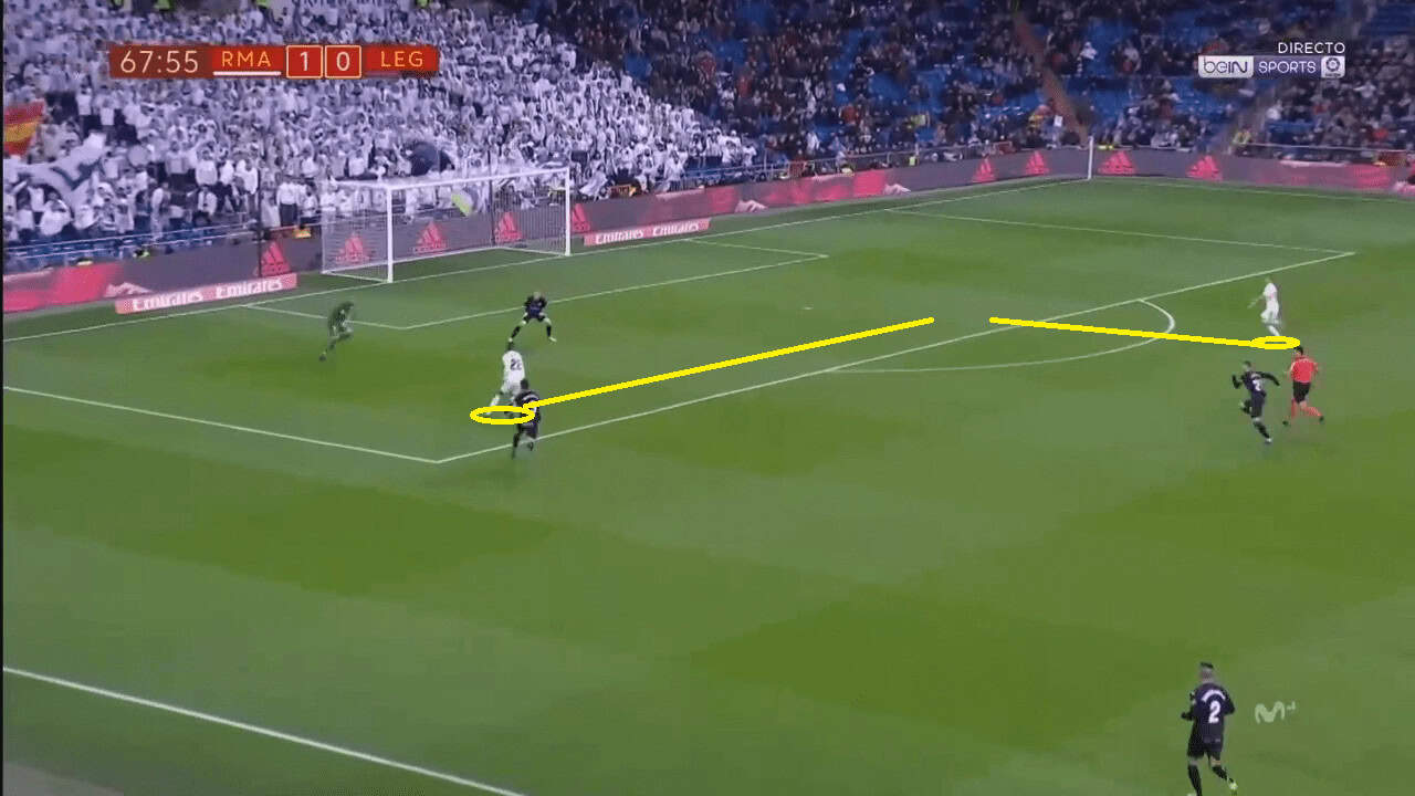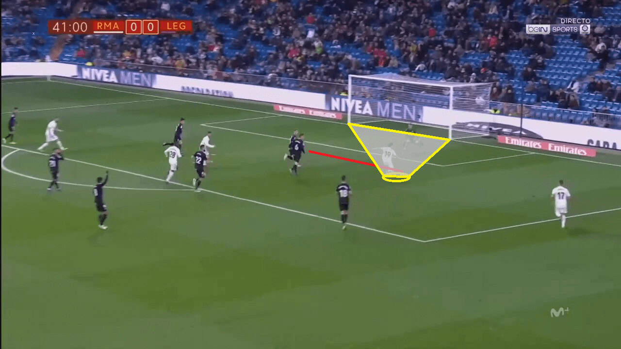 Odriozola burst down the wing, placed off the ball to Vazquez and cut inside to occupy a gaping hole in the Leganes defence. Fede Valverde picked him out expertly and the full-back had an incredible opportunity to open the scoring one-on-one. Instead, he looked to cut the ball back into a crowd of Leganes defenders, bottling his chance to score his first goal for the club.