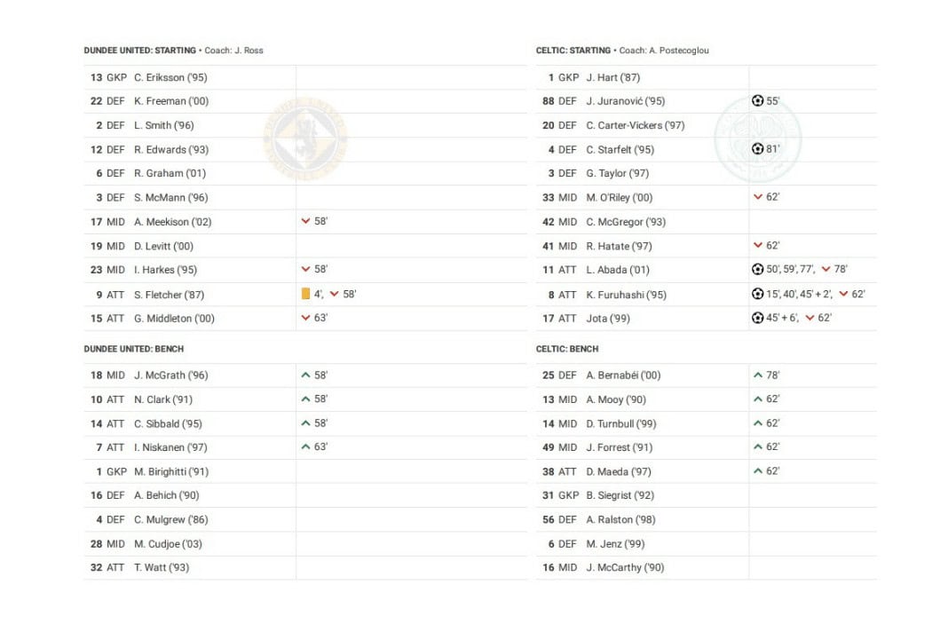 The weekend saw Dundee United vs Celtic in the Scottish Premiership.