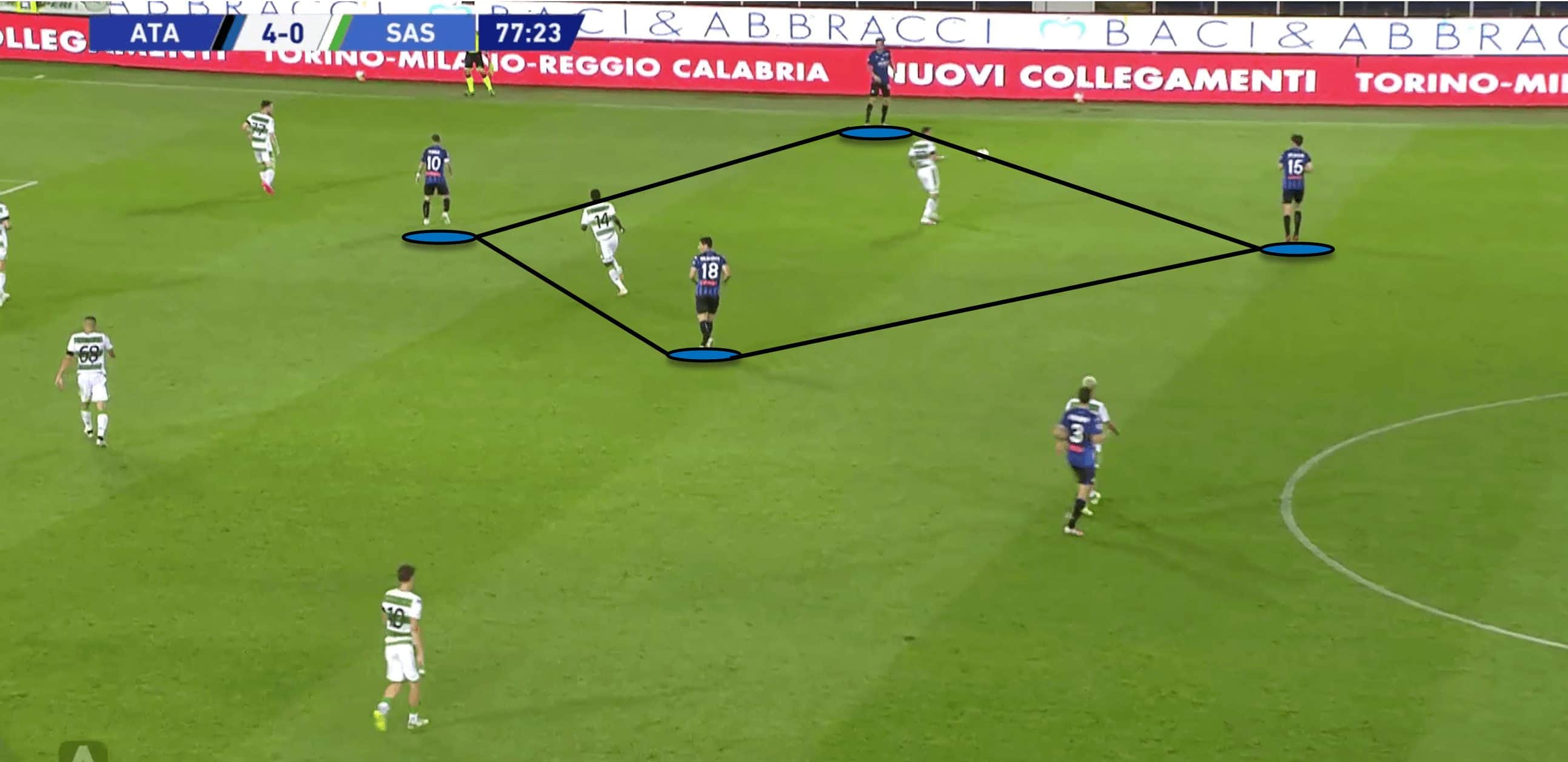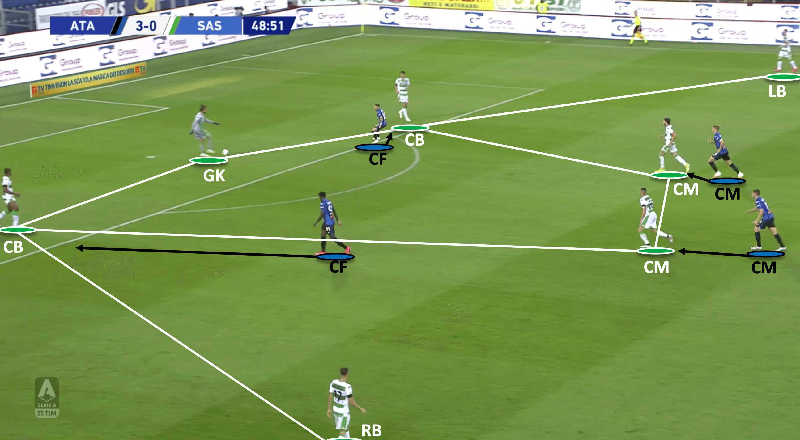 We can see another example of this, this time later in the game. Once again we can see the same structure from Sassuolo and Atalanta.