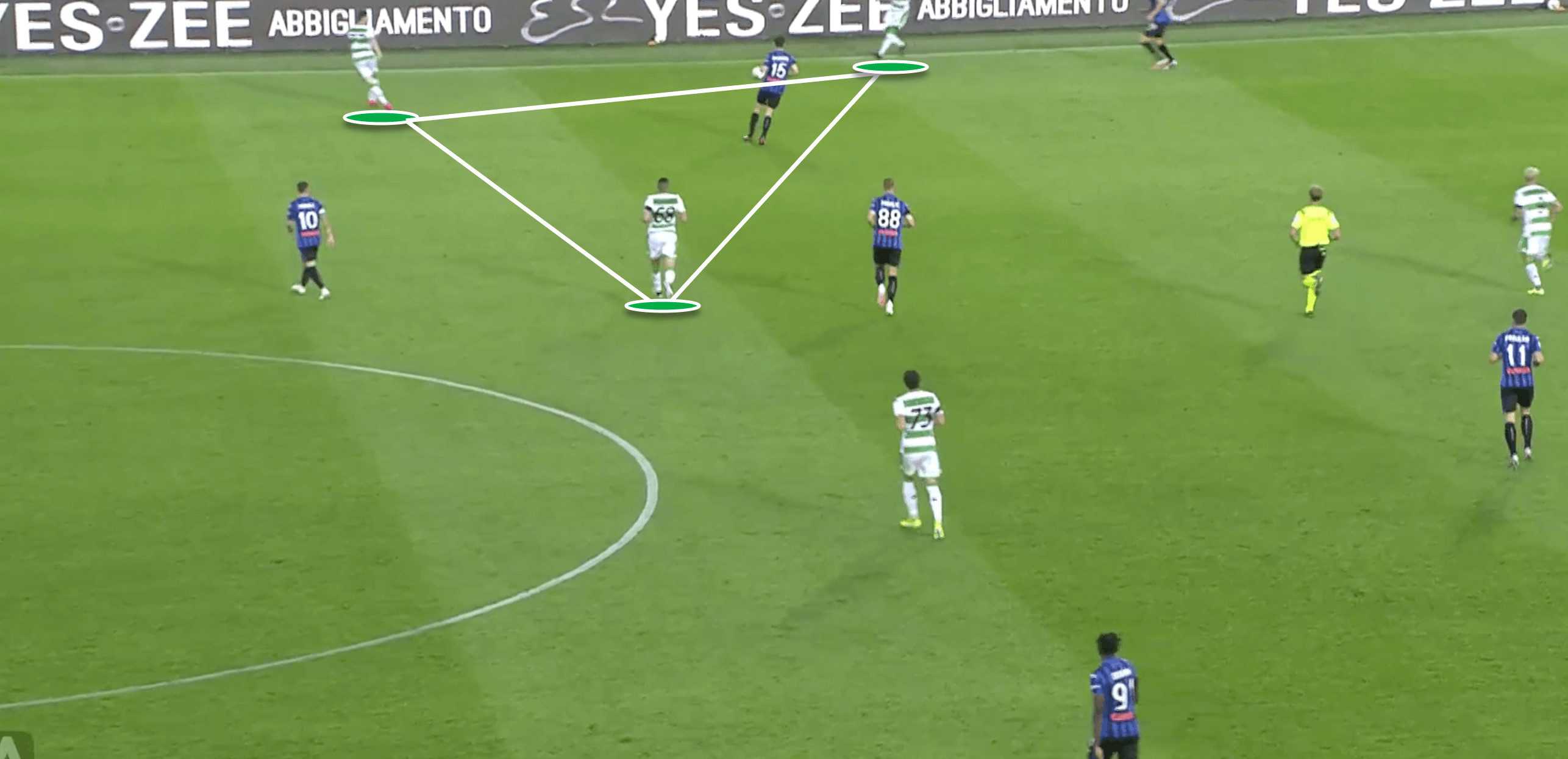 The diamonds tend to create a 4v3 on the wing in favour of Atalanta. If a 4v4 is created, the advanced midfielder will shift wide to create a 5v4.