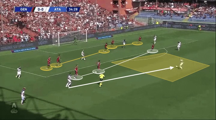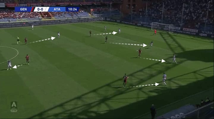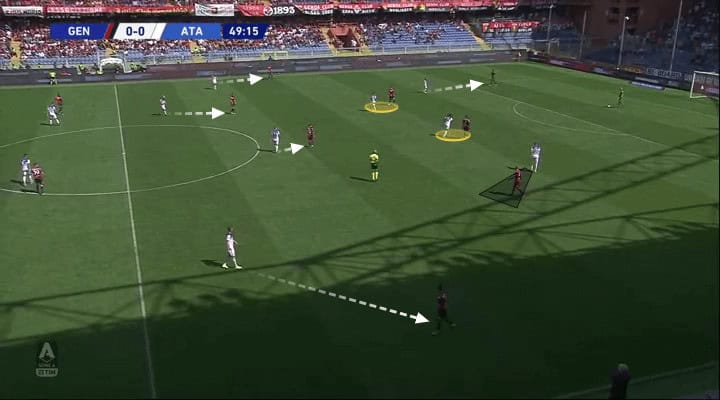 Atalanta’s direct man-orientations when Genoa looked to build from the back