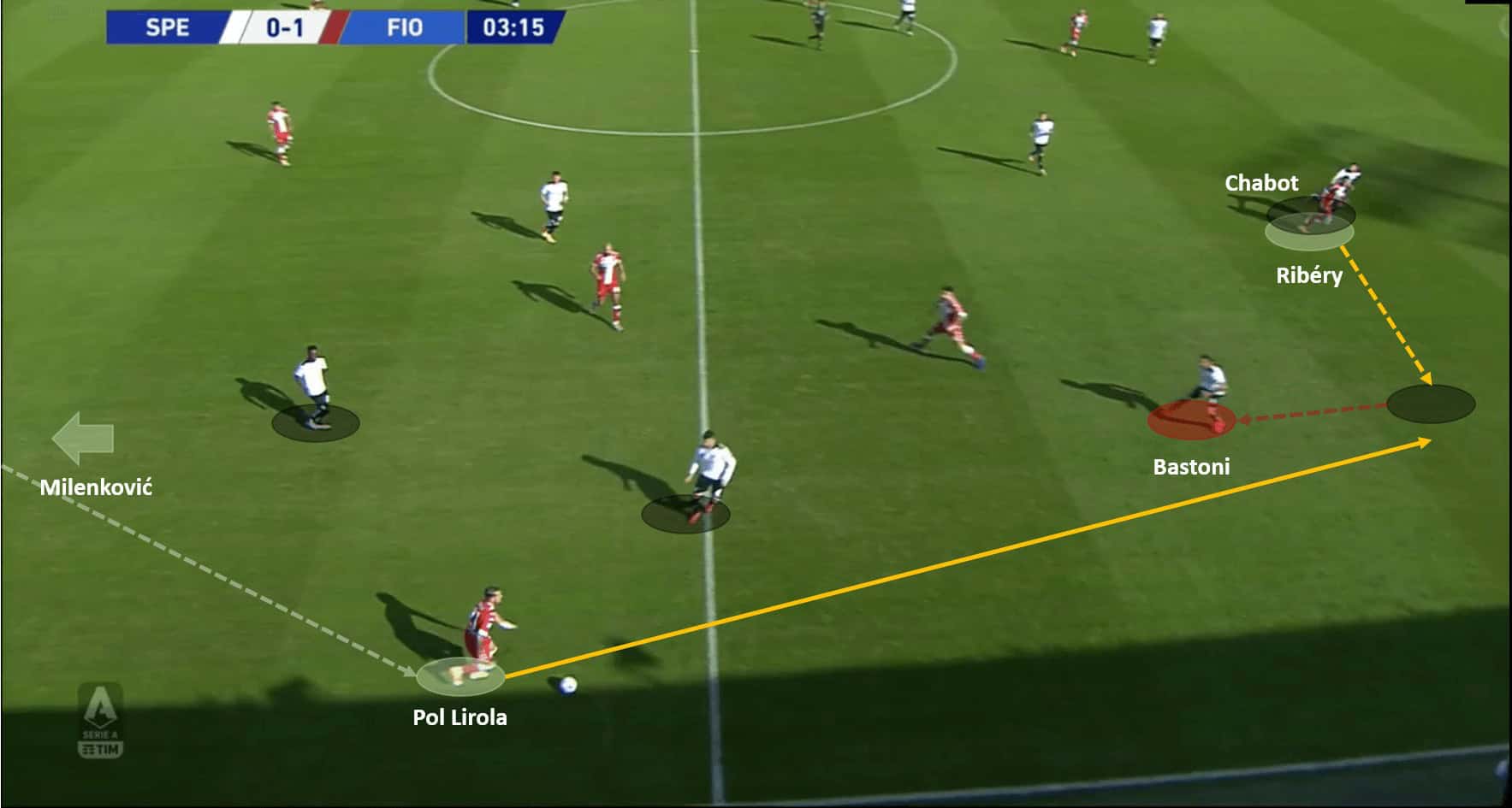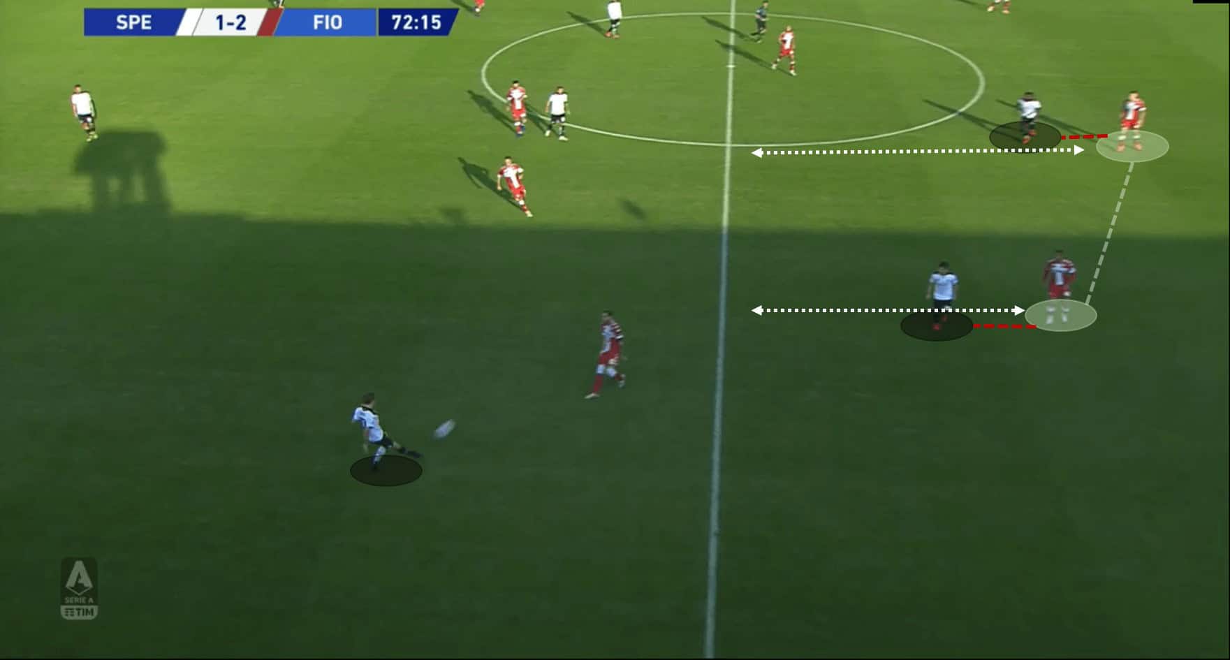 The analysis shows that this wasn’t the only occasion where Fiorentina’s shape tactics and good positional sense helped them take advantage of Spezia. But it certainly was the most fruitful instance as it led to their second goal of the game.