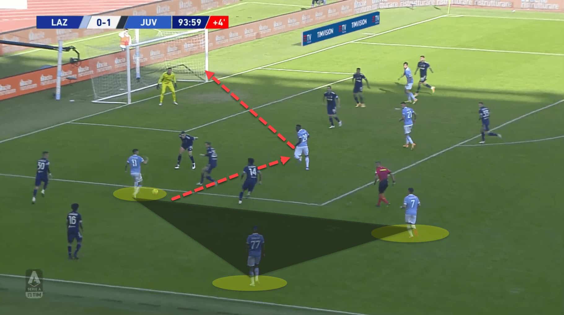 Juventus failed to deal with these numerical overloads effectively as it was not the first time that Lazio created a great chance from the flanks in this game, but it was the first time that they converted one of these opportunities.