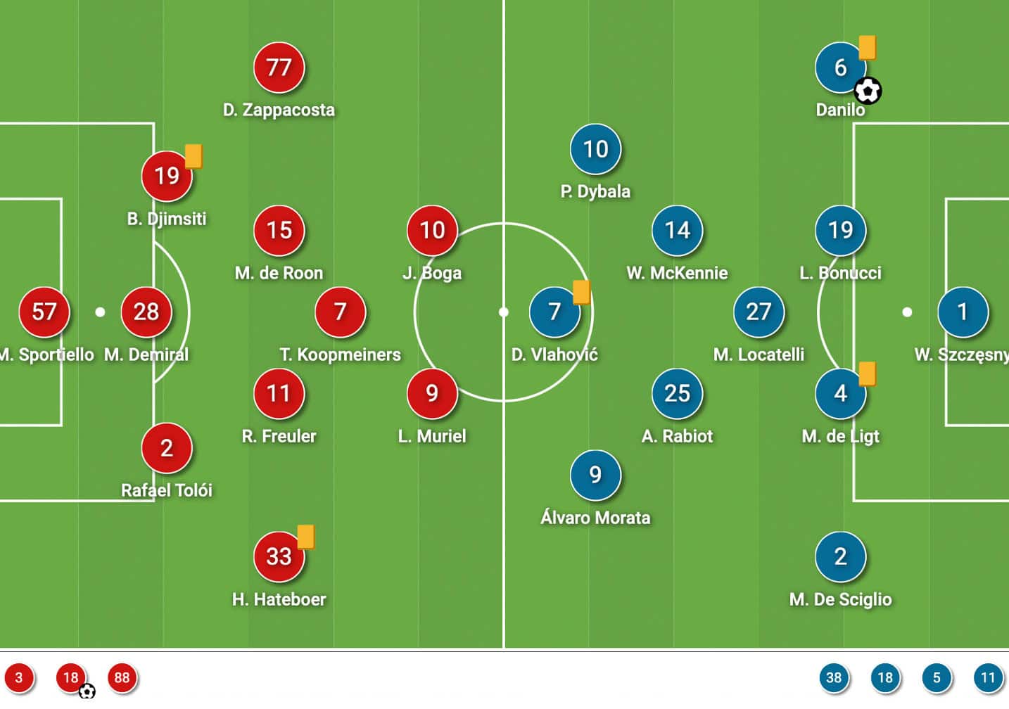 Allegri had so much trust in Dušan Vlahović ability as the new arrival from Fiorentina started consecutive games already. To accommodate the Serbian striker, Morata was moved to the left-winger position while Paulo Dybala played as the right-winger. In the midfield, the three players chosen were Weston McKennie, Adrien Rabiot, and Manuel Locatelli. Danilo, Leonardo Bonucci, Matthijs de Ligt, and Mattia De Sciglio formed the defensive line.