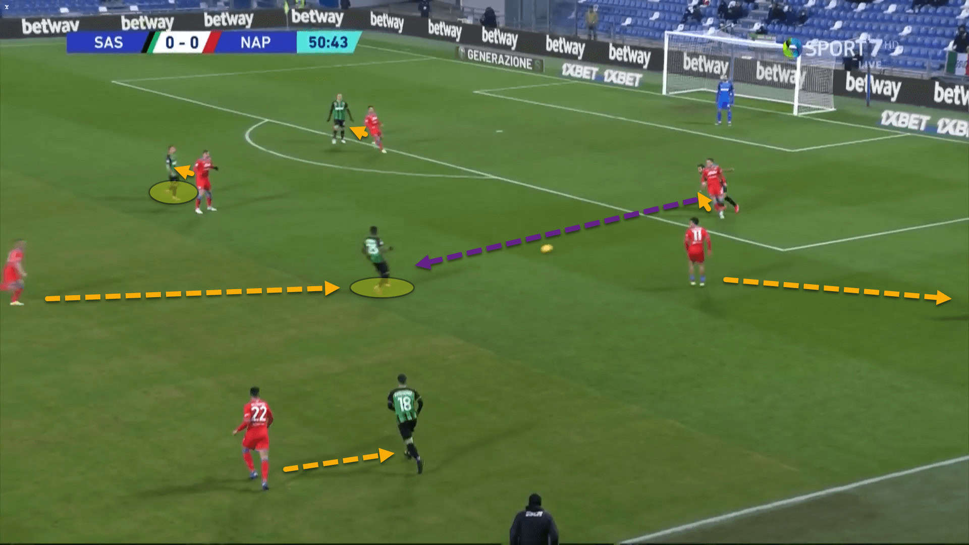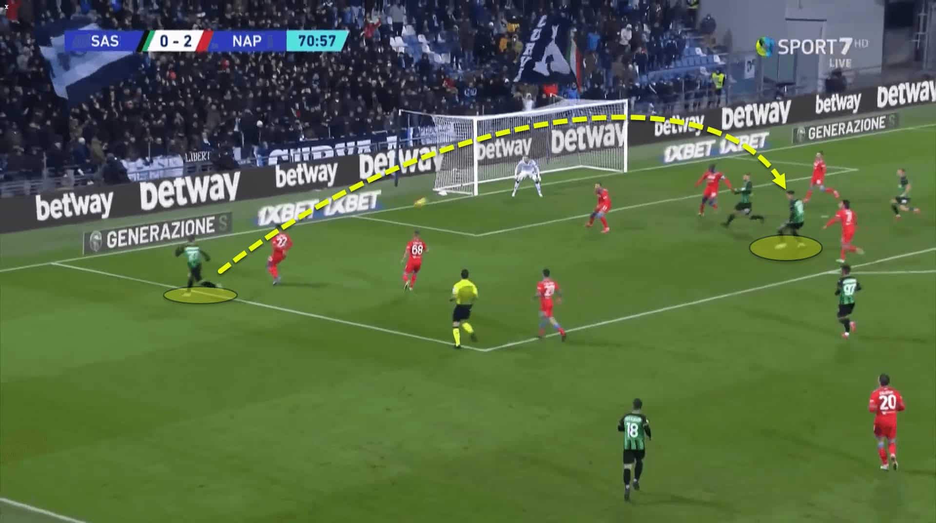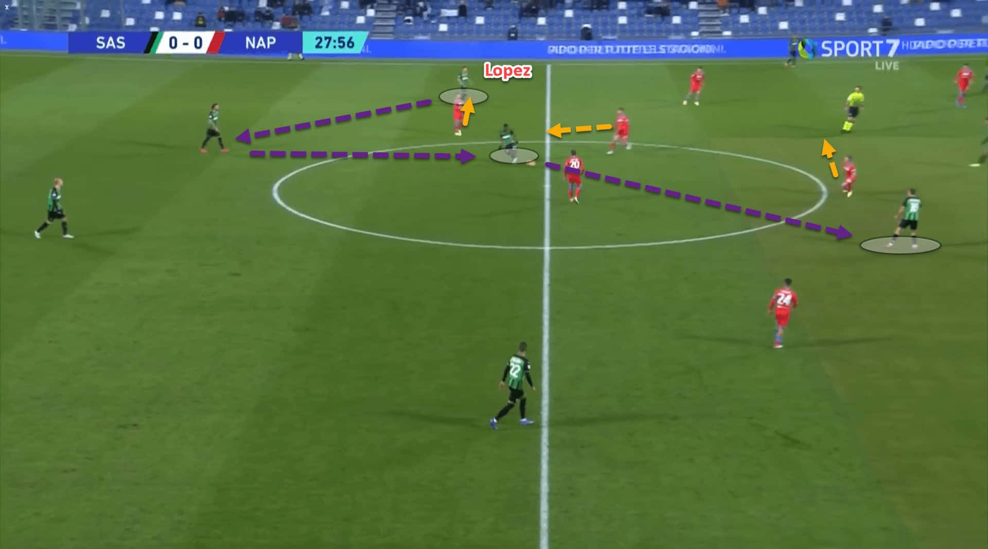 The pass was slightly more unorthodox, but Lopez executed it well and Sassuolo were now between the lines where they always want to have the ball.