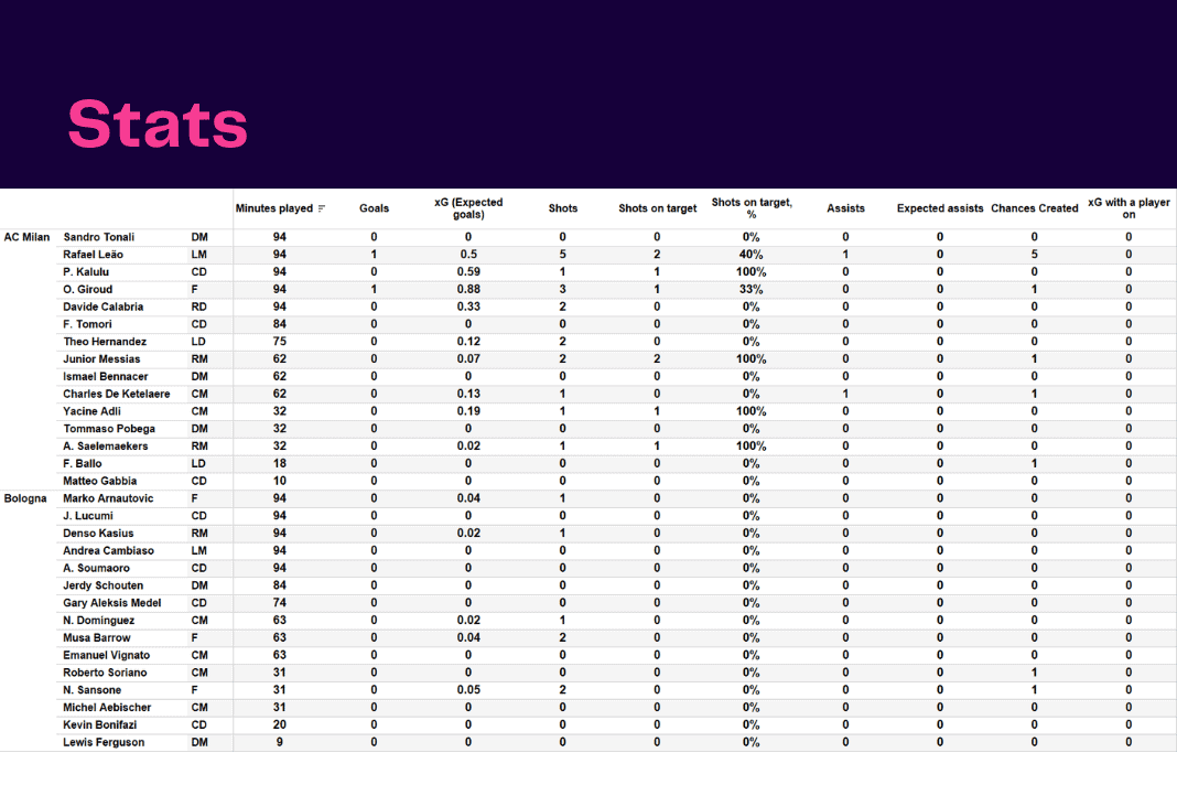 Serie A 2022/23: AC Milan vs Bologna – data viz, stats and insights