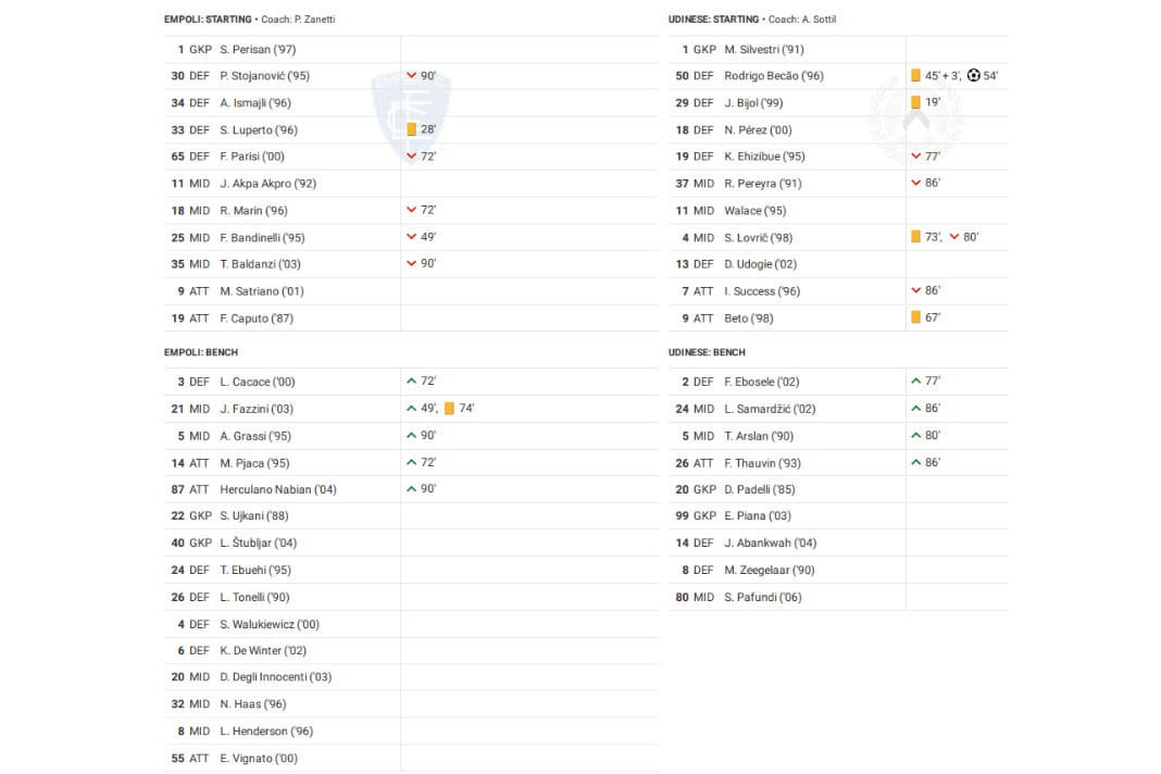 Saturday saw Empoli vs Udinese in the Serie A.