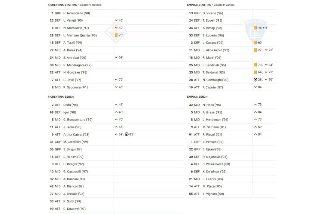 Sunday saw Fiorentina vs Empoli in Serie A.