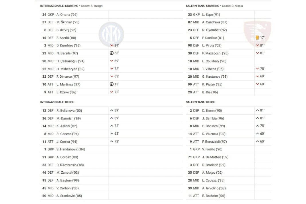 Serie A 2022/23: Inter vs Salernitana – data viz, stats and insights
