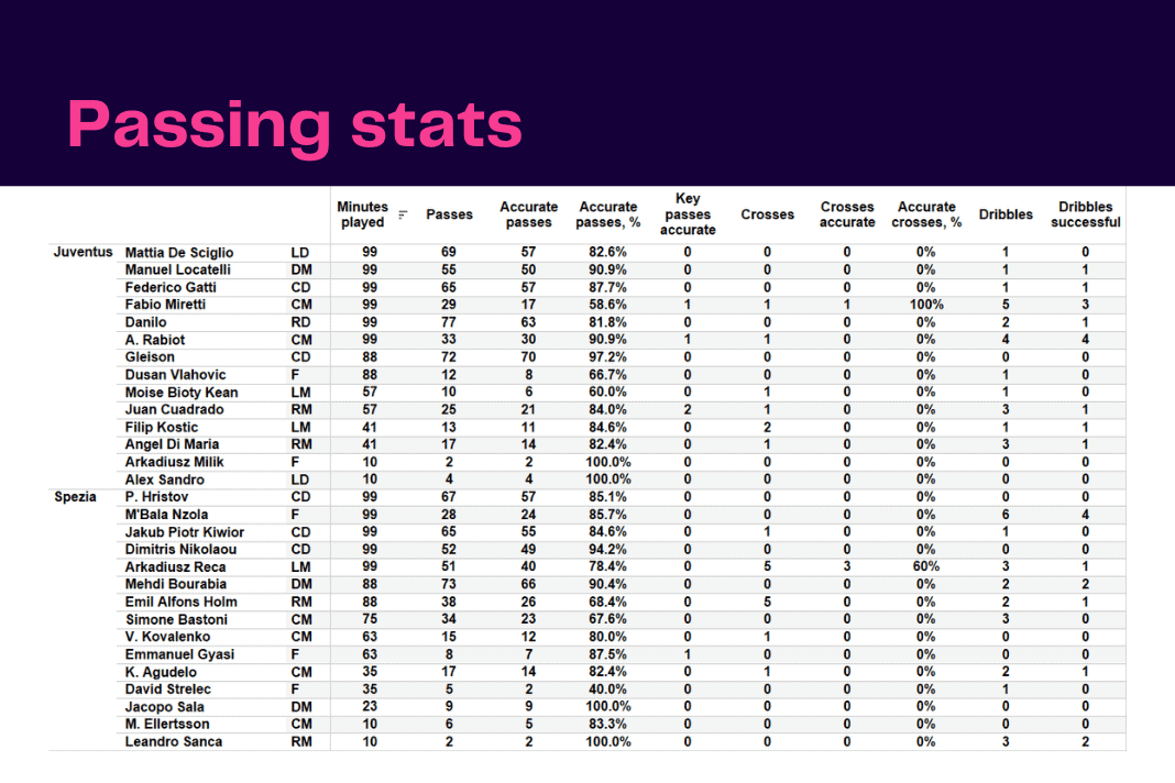 Serie A 2022/23: Juventus vs Spezia – data viz, stats and insights