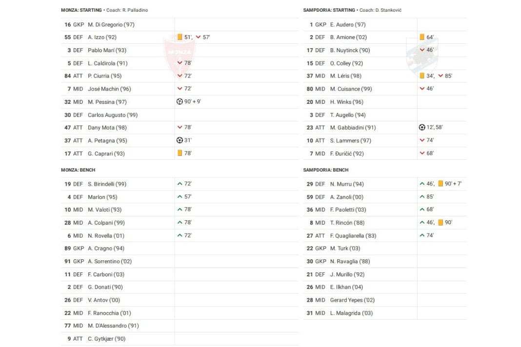 Monday saw Monza vs Sampdoria in Serie A.