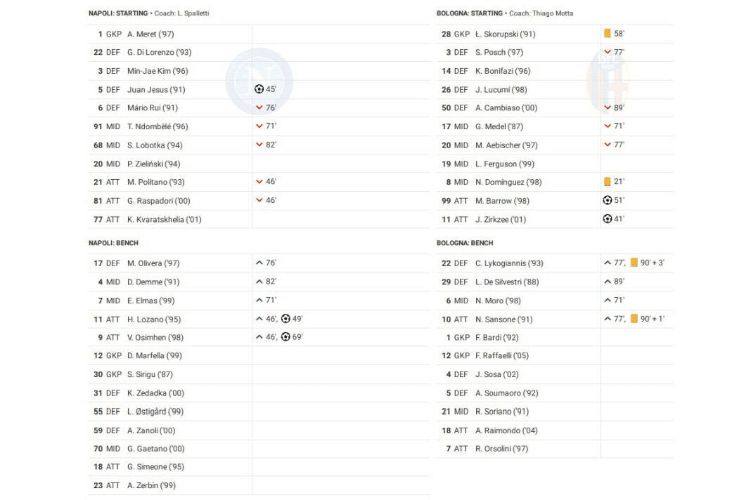 Sunday saw Napoli vs Bologna in Serie A.