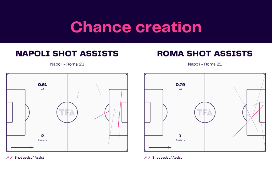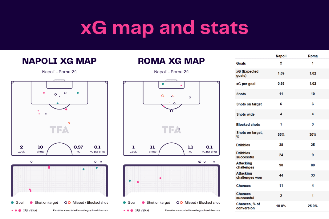 Sunday saw <a href="https://totalfootballanalysis.com/match-analysis/serie-a-2022-23-napoli-vs-juventus-data-viz-stats-and-insights">Napoli vs Roma</a> in <a href="https://totalfootballanalysis.com/category/competitions/serie-a">Serie A</a>. We've broken down all the key <a href="https://totalfootballanalysis.com/match-analysis/free-download-premier-league-gw8-analytics-reports-data-viz-and-stats">stats</a> for you to digest in this tactical analysis and provide <a href="https://totalfootballanalysis.com/player-analysis/but-what-does-that-visual-actually-tell-us">insights</a> around; * xG maps * touch maps * chance creation * penalty area entries * ball progression * high regains * fouls & errors * and much more! We also try to answer some questions for you with the visuals; Who was <a href="https://totalfootballanalysis.com/match-analysis/uefa-champions-league-2022-23-liverpool-vs-napoli-tactical-analysis-tactics">Napoli's</a> biggest threat? Who made the most recoveries in the opposition half? Who had the highest xG in the match? To navigate the stats gallery simply click on the numbers to move through the pages. <a href="https://totalfootballanalysis.com/wp-content/uploads/2023/01/2-163.jpg"><img class="aligncenter size-large wp-image-431290" src="https://totalfootballanalysis.com/wp-content/uploads/2023/01/2-163-1024x683.jpg" alt="Serie A 2022/23: Napoli vs Roma - data viz, stats and insights" width="640" height="427" /></a> <a href="https://totalfootballanalysis.com/wp-content/uploads/2023/01/3-163.jpg"><img class="aligncenter size-large wp-image-431291" src="https://totalfootballanalysis.com/wp-content/uploads/2023/01/3-163-1024x683.jpg" alt="Serie A 2022/23: Napoli vs Roma - data viz, stats and insights" width="640" height="427" /></a> <a href="https://totalfootballanalysis.com/wp-content/uploads/2023/01/4-164.png"><img class="aligncenter size-large wp-image-431292" src="https://totalfootballanalysis.com/wp-content/uploads/2023/01/4-164-1024x683.png" alt="Serie A 2022/23: Napoli vs Roma - data viz, stats and insights" width="640" height="427" /></a> <a href="https://totalfootballanalysis.com/wp-content/uploads/2023/01/5-162.png"><img class="aligncenter size-large wp-image-431293" src="https://totalfootballanalysis.com/wp-content/uploads/2023/01/5-162-1024x683.png" alt="Serie A 2022/23: Napoli vs Roma - data viz, stats and insights" width="640" height="427" /></a> <a href="https://totalfootballanalysis.com/wp-content/uploads/2023/01/6-163.png"><img class="aligncenter size-large wp-image-431294" src="https://totalfootballanalysis.com/wp-content/uploads/2023/01/6-163-1024x683.png" alt="Serie A 2022/23: Napoli vs Roma - data viz, stats and insights" width="640" height="427" /></a> <a href="https://totalfootballanalysis.com/wp-content/uploads/2023/01/7-163.png"><img class="aligncenter size-large wp-image-431295" src="https://totalfootballanalysis.com/wp-content/uploads/2023/01/7-163-1024x683.png" alt="Serie A 2022/23: Napoli vs Roma - data viz, stats and insights" width="640" height="427" /></a> <strong>Turn the page for the xG map, chances created and more</strong><!--nextpage--> <a href="https://totalfootballanalysis.com/wp-content/uploads/2023/01/8-165.png"><img class="aligncenter size-large wp-image-431296" src="https://totalfootballanalysis.com/wp-content/uploads/2023/01/8-165-1024x683.png" alt="Serie A 2022/23: Napoli vs Roma - data viz, stats and insights" width="640" height="427" /></a> <a href="https://totalfootballanalysis.com/wp-content/uploads/2023/01/9-162.png"><img class="aligncenter size-large wp-image-431297" src="https://totalfootballanalysis.com/wp-content/uploads/2023/01/9-162-1024x683.png" alt="Serie A 2022/23: Napoli vs Roma - data viz, stats and insights" width="640" height="427" /></a> <strong>Turn the page for the pass zones, maps, stats and more</strong><!--nextpage--> <a href="https://totalfootballanalysis.com/wp-content/uploads/2023/01/10-162.png"><img class="aligncenter size-large wp-image-431298" src="https://totalfootballanalysis.com/wp-content/uploads/2023/01/10-162-1024x683.png" alt="Serie A 2022/23: Napoli vs Roma - data viz, stats and insights" width="640" height="427" /></a> <a href="https://totalfootballanalysis.com/wp-content/uploads/2023/01/11-163.jpg"><img class="aligncenter size-large wp-image-431299" src="https://totalfootballanalysis.com/wp-content/uploads/2023/01/11-163-1024x683.jpg" alt="Serie A 2022/23: Napoli vs Roma - data viz, stats and insights" width="640" height="427" /></a> <a href="https://totalfootballanalysis.com/wp-content/uploads/2023/01/12-161.png"><img class="aligncenter size-large wp-image-431300" src="https://totalfootballanalysis.com/wp-content/uploads/2023/01/12-161-1024x683.png" alt="Serie A 2022/23: Napoli vs Roma - data viz, stats and insights" width="640" height="427" /></a> <a href="https://totalfootballanalysis.com/wp-content/uploads/2023/01/13-161.png"><img class="aligncenter size-large wp-image-431301" src="https://totalfootballanalysis.com/wp-content/uploads/2023/01/13-161-1024x683.png" alt="Serie A 2022/23: Napoli vs Roma - data viz, stats and insights" width="640" height="427" /></a> <a href="https://totalfootballanalysis.com/wp-content/uploads/2023/01/14-162.png"><img class="aligncenter size-large wp-image-431302" src="https://totalfootballanalysis.com/wp-content/uploads/2023/01/14-162-1024x683.png" alt="Serie A 2022/23: Napoli vs Roma - data viz, stats and insights" width="640" height="427" /></a> <a href="https://totalfootballanalysis.com/wp-content/uploads/2023/01/15-162.png"><img class="aligncenter size-large wp-image-431303" src="https://totalfootballanalysis.com/wp-content/uploads/2023/01/15-162-1024x683.png" alt="Serie A 2022/23: Napoli vs Roma - data viz, stats and insights" width="640" height="427" /></a> <a href="https://totalfootballanalysis.com/wp-content/uploads/2023/01/16-162.png"><img class="aligncenter size-large wp-image-431304" src="https://totalfootballanalysis.com/wp-content/uploads/2023/01/1