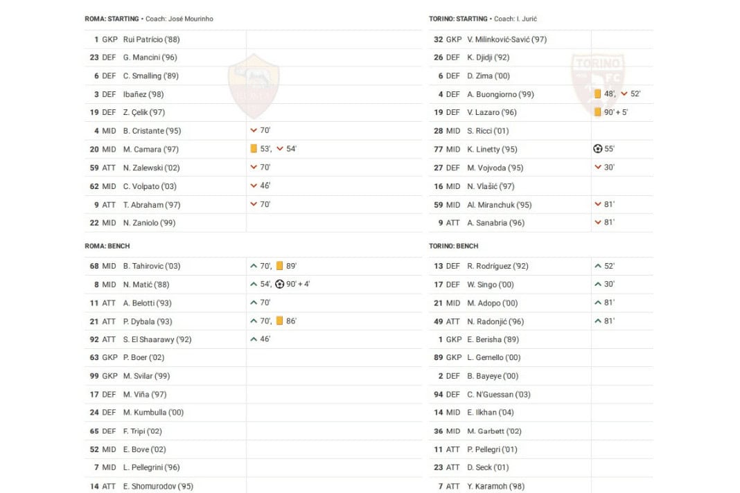 Sunday saw Roma vs Torino in Serie A.