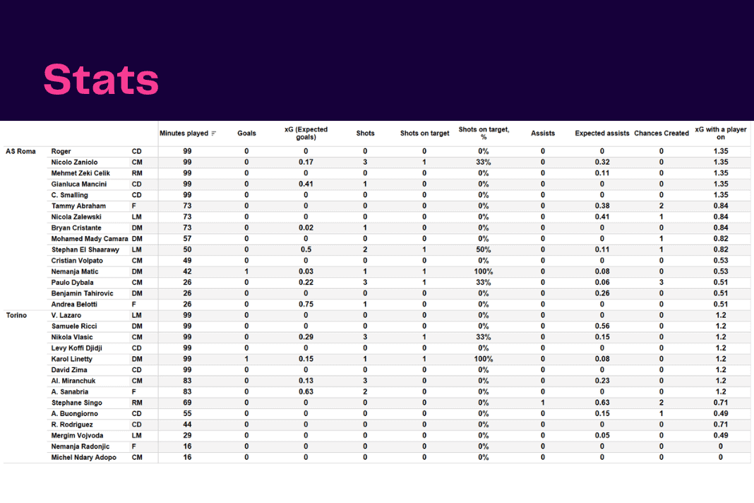 Serie A 2022/23: Roma vs Torino – data viz, stats and insights