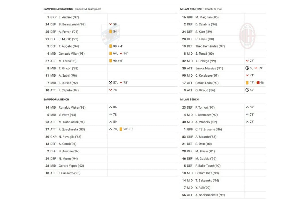 Saturday saw Sampdoria vs AC Milan in Serie A.