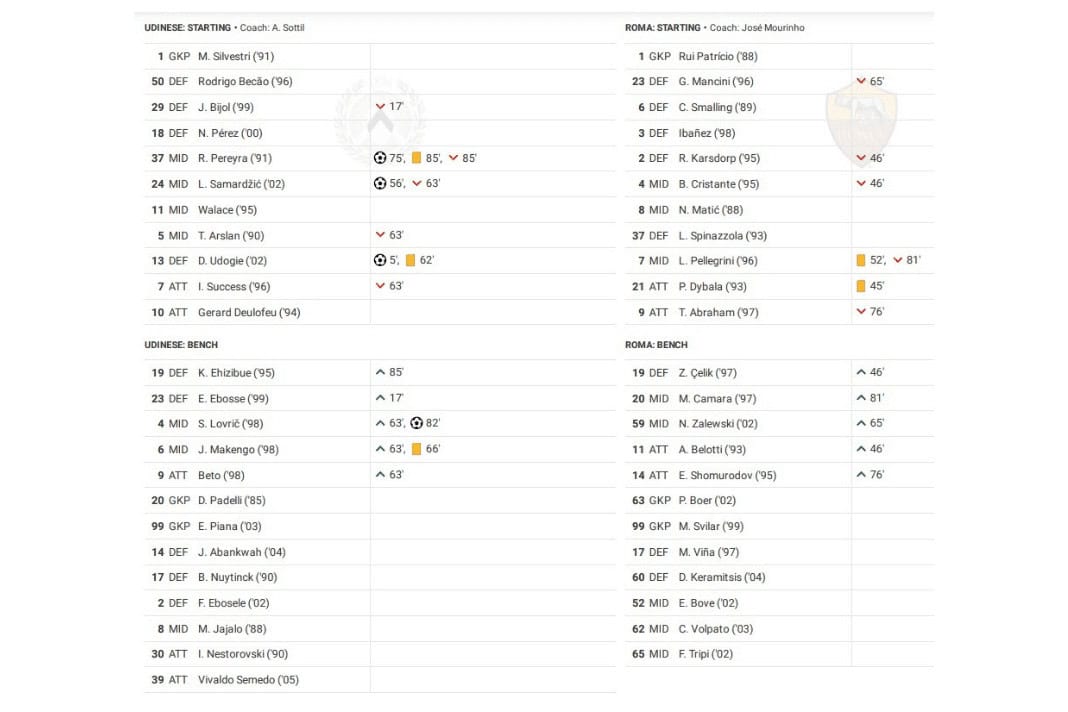 Sunday saw Udinese vs Roma in Serie A.