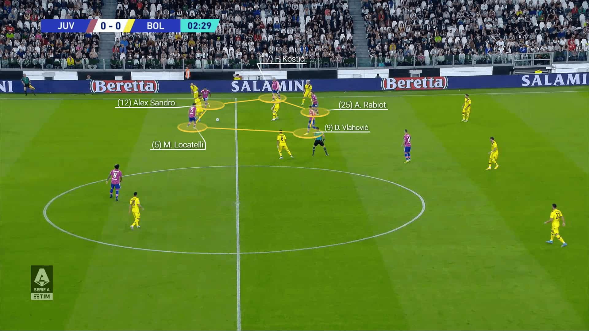 He usually supports the team with many recoveries in the advanced areas and involves in all defensive actions, and his absence is the perfect chance for Juventus to break through those first lines of defence and progress the ball so they can rely on the attacking players’ individual skill to threaten the goal.