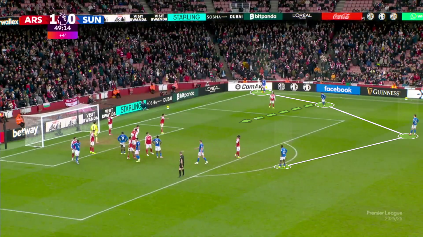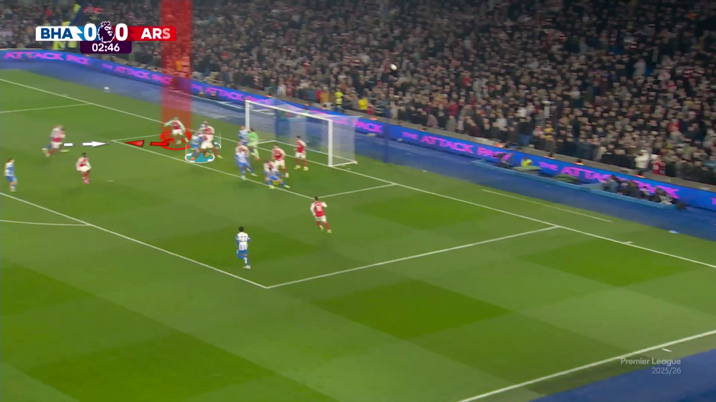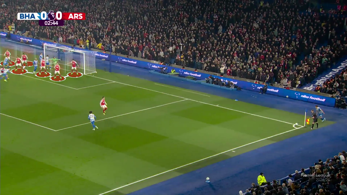 Depending on Arsenal’s previous reaction to teams that are good at attacking the area beyond the far post, we can see how Arsenal defended corners against Brighton, as shown in Figure 6 below.