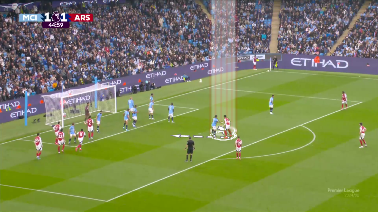 In the end (figure 11), it was a dangerous situation with two attackers against one man marker and the last zonal defender on the far post, but Raya claimed the cross.
