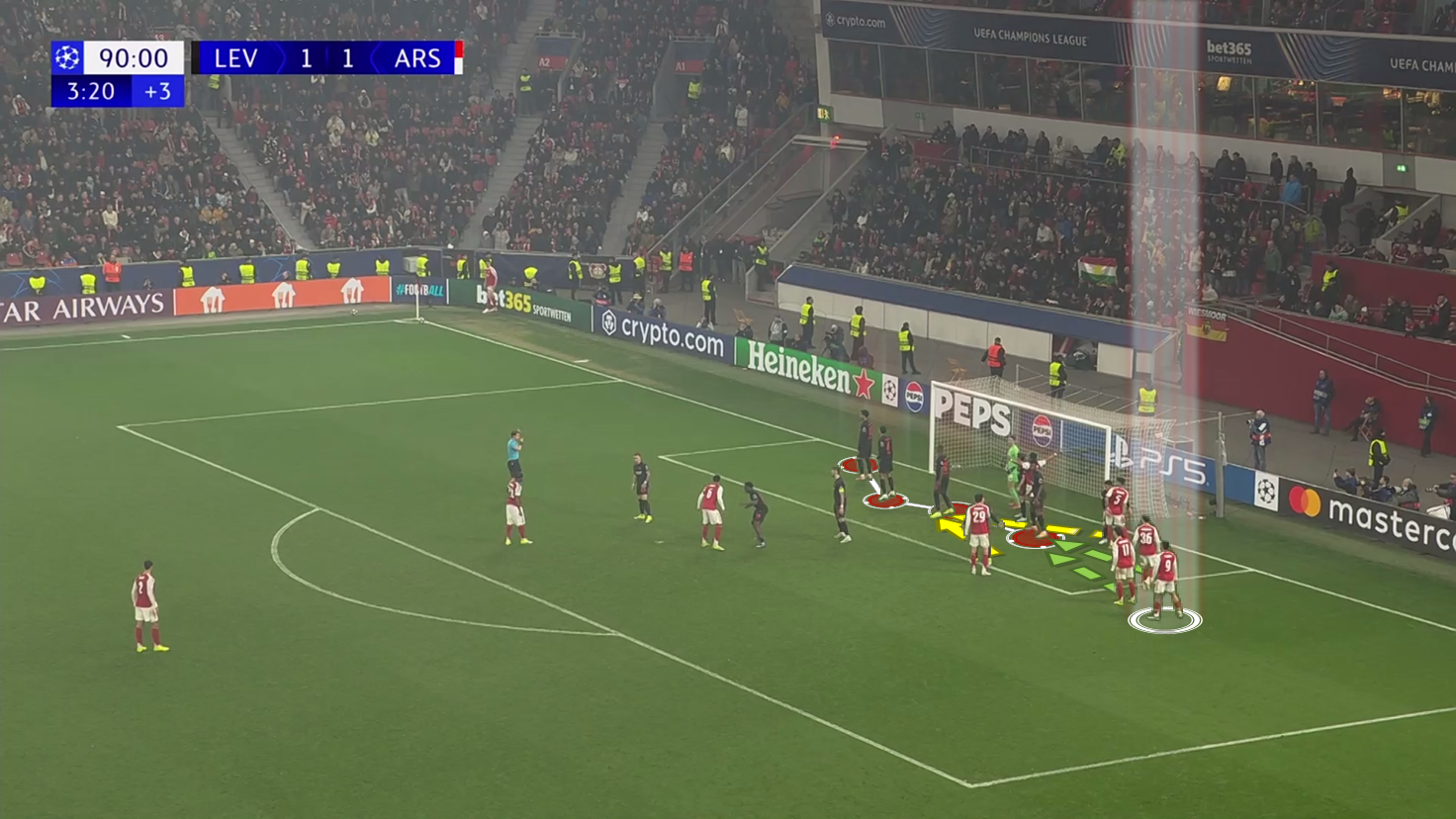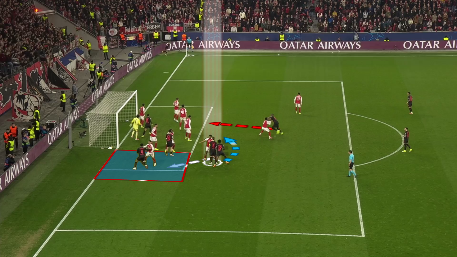 In this set-piece analysis, we examined the previous set-piece battle between Bayer Leverkusen and Arsenal, showing how both teams tried to exploit the offensive corners in innovative ways.