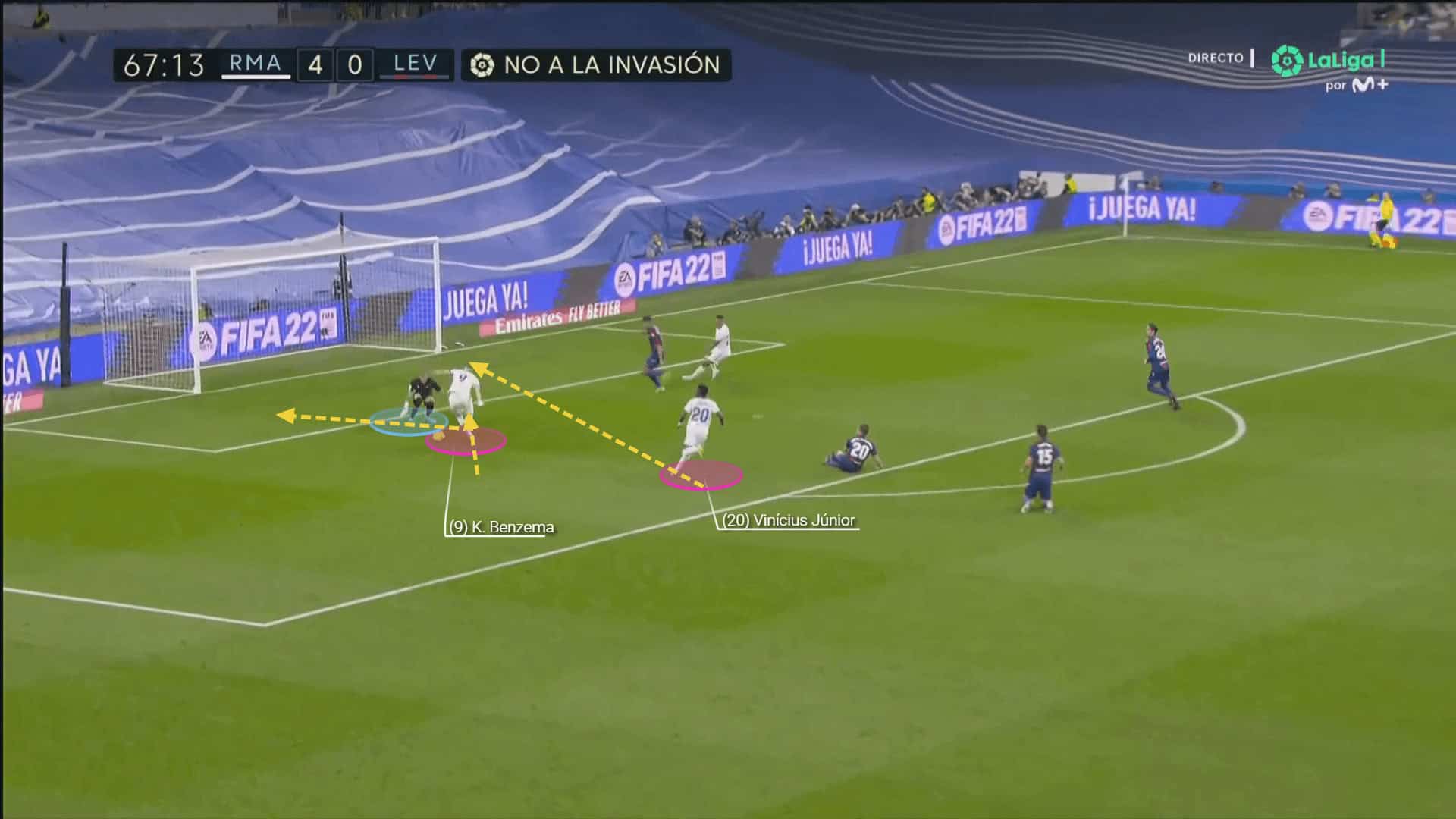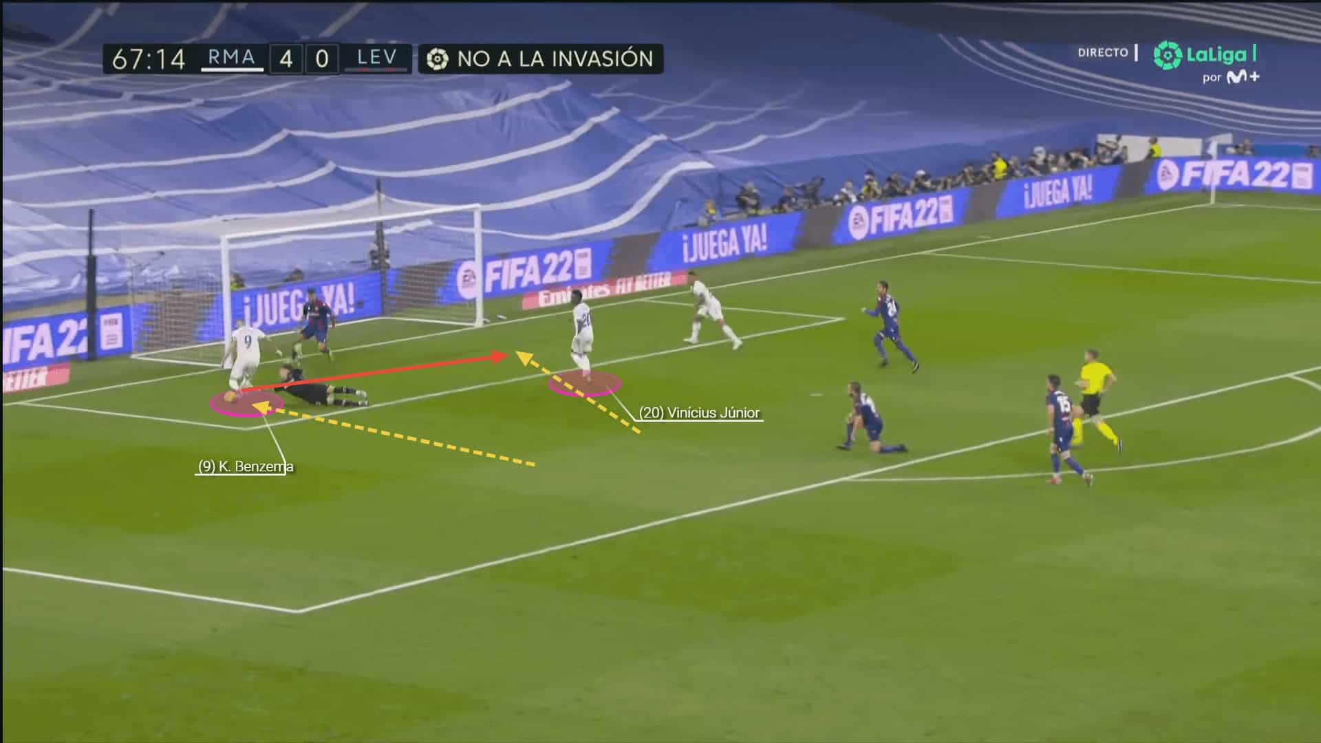 Real are quite a threatening team in possession but there’s one area where they might gain a precious advantage. Using Vinícius Jr’s movement and abilities correctly might turn out crucial for the team in attack. While many would defend Alexander-Arnold’s defensive displays, the truth is that his success in 1vs1 situations is doubtful. While he is absolutely vital in his contribution to attack, his defensive responsibilities are often left behind and he has difficulties in meeting the expectations.