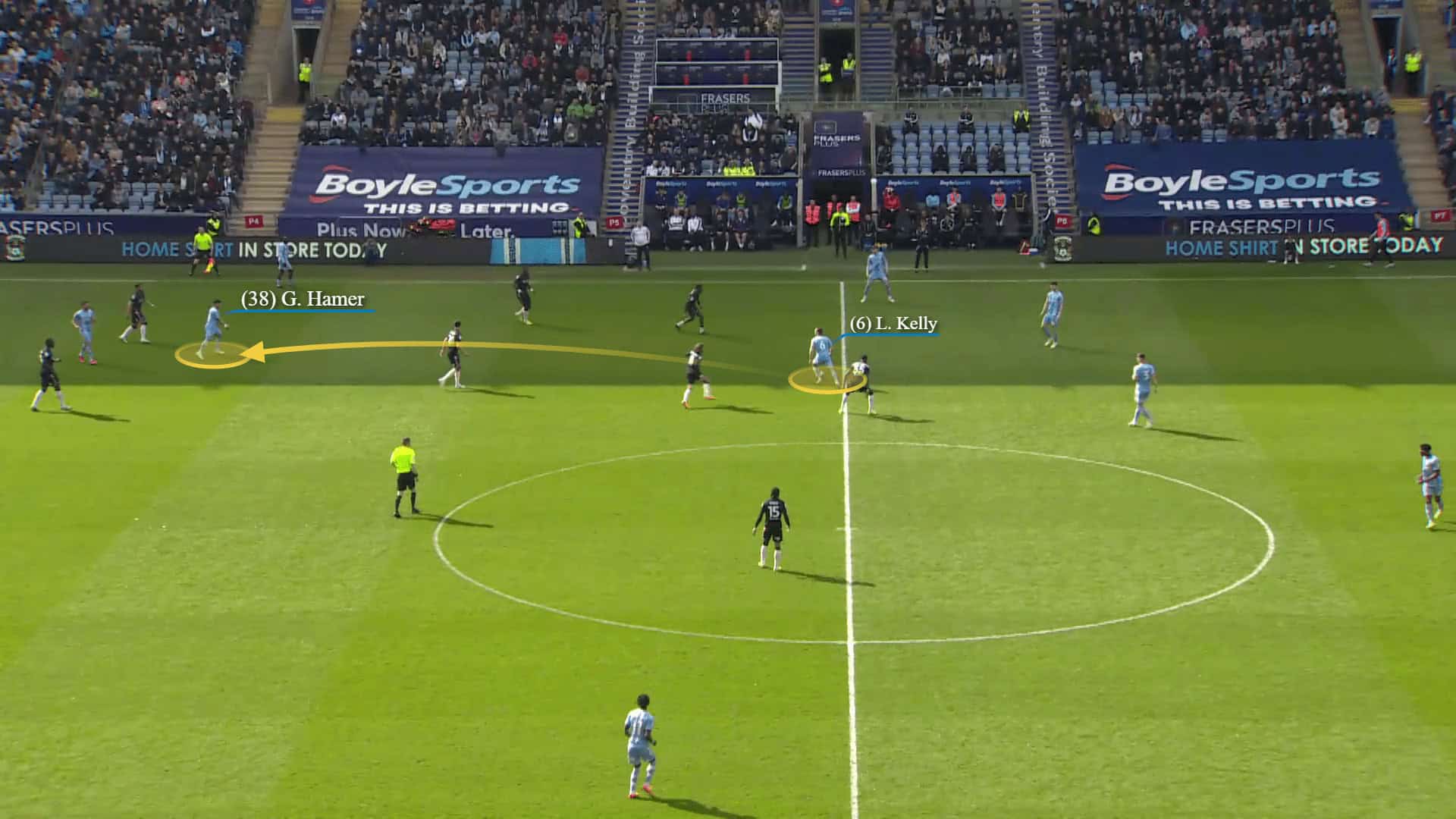 In their 2-1 win against Reading. Kelly played a progressive pass in between the lines for the well-positioned Hamer…