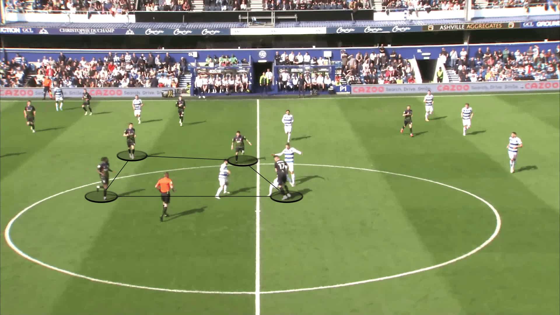 Additionally, sometimes one of the box-midfield has the room to drift wider to receive there, while the wingback advances forward to pin the opposition’s fullback higher…