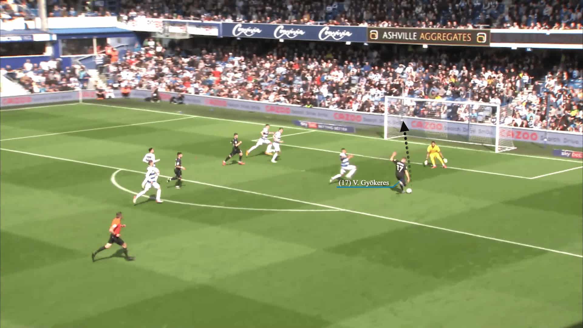 …who broke through while Godden and Gyökeres ran in opposite directions to open up a gap between both Reading’s centre-backs.