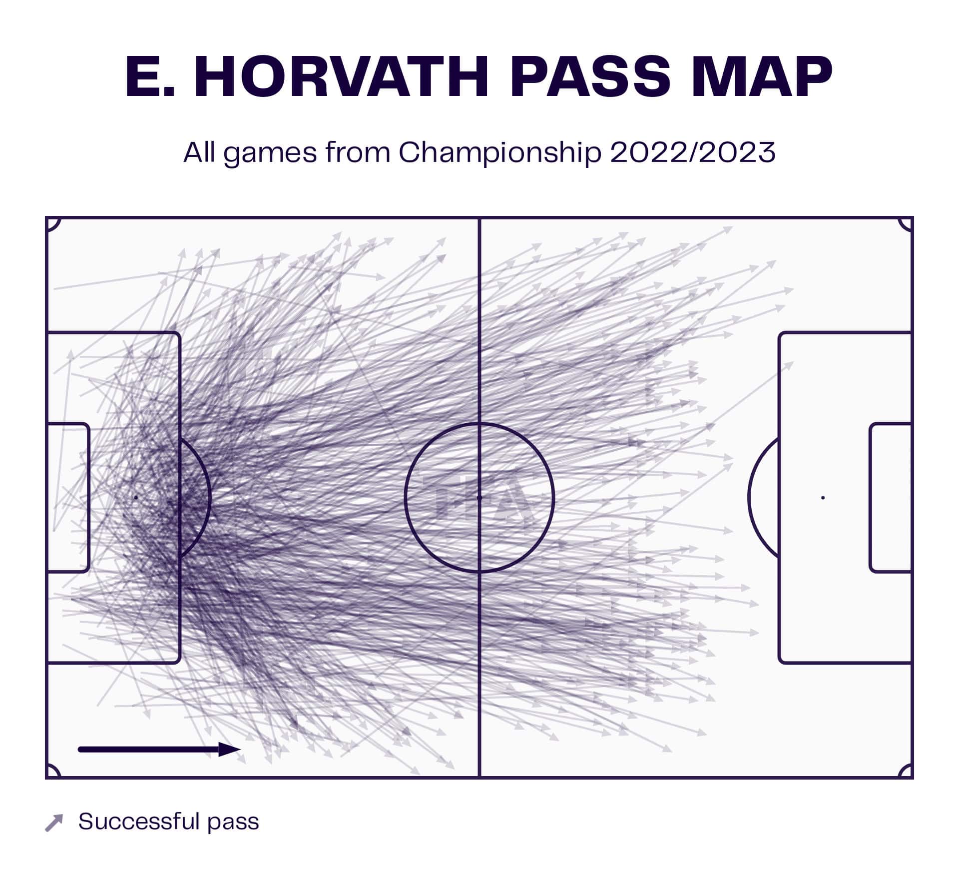Luton Town embody the essence of classic English football and generally lack positional rotations, being much closer to traditional English football compared to Coventry City in terms of style. This is clearly evident in their heavy reliance on long balls which is fully evident in the pass map of their goalkeeper Horvath who usually targets both half-spaces.
