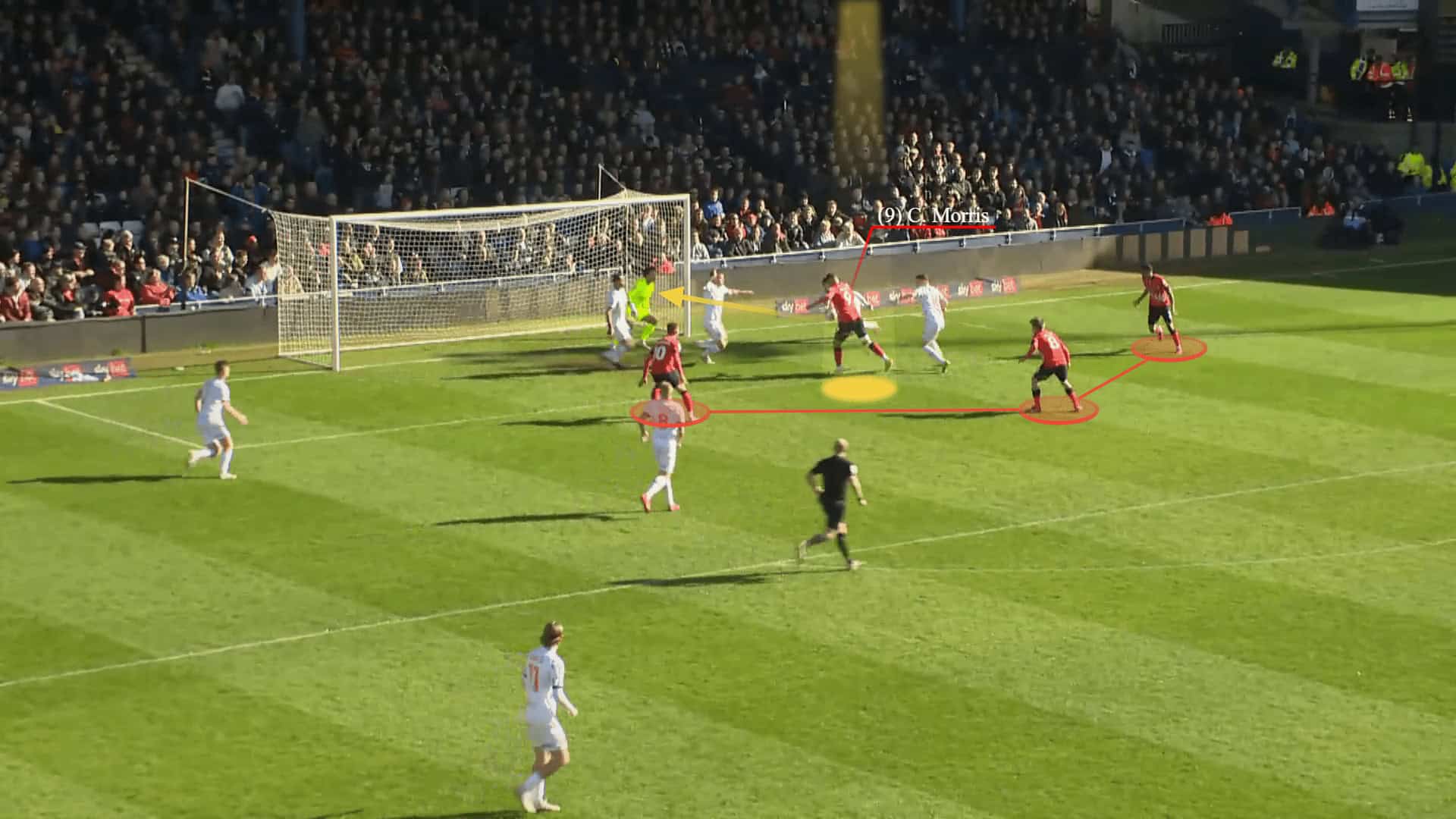Amidst this chaotic situation, Carlton Morris, who has been their top scorer this season with an impressive tally of 20 goals, seized the opportunity when the ball deflected off a defender and fell conveniently in front of him, allowing him to swiftly find the back of the net and add another goal in a 3-1 win.