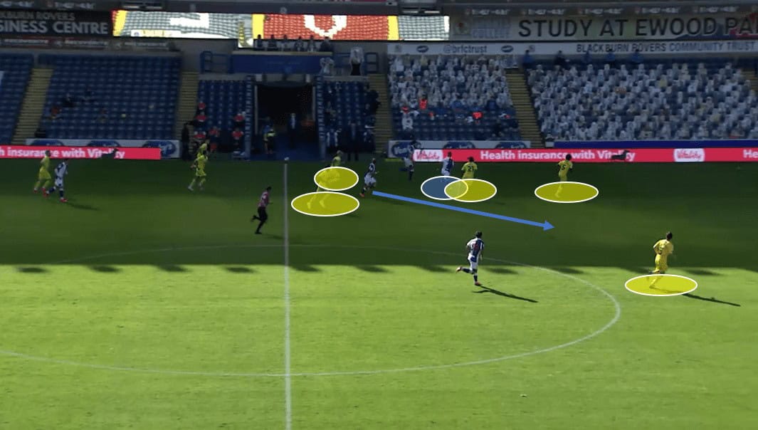 Six goals conceded in two games hardly represents a solid defensive start and Wycombe’s defending has showed some worrying signs so far. Swansea’s young and vibrant attack will be looking to exploit these weaknesses. A theme of a couple of Wycombe’s conceded goals this season have been extremely similar and will be something that Cooper will have looked at it. The frames below illustrate this by showing the second goal for Blackburn in the 5-0 loss as the first example.
