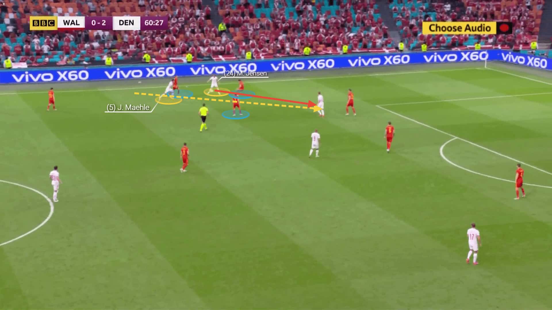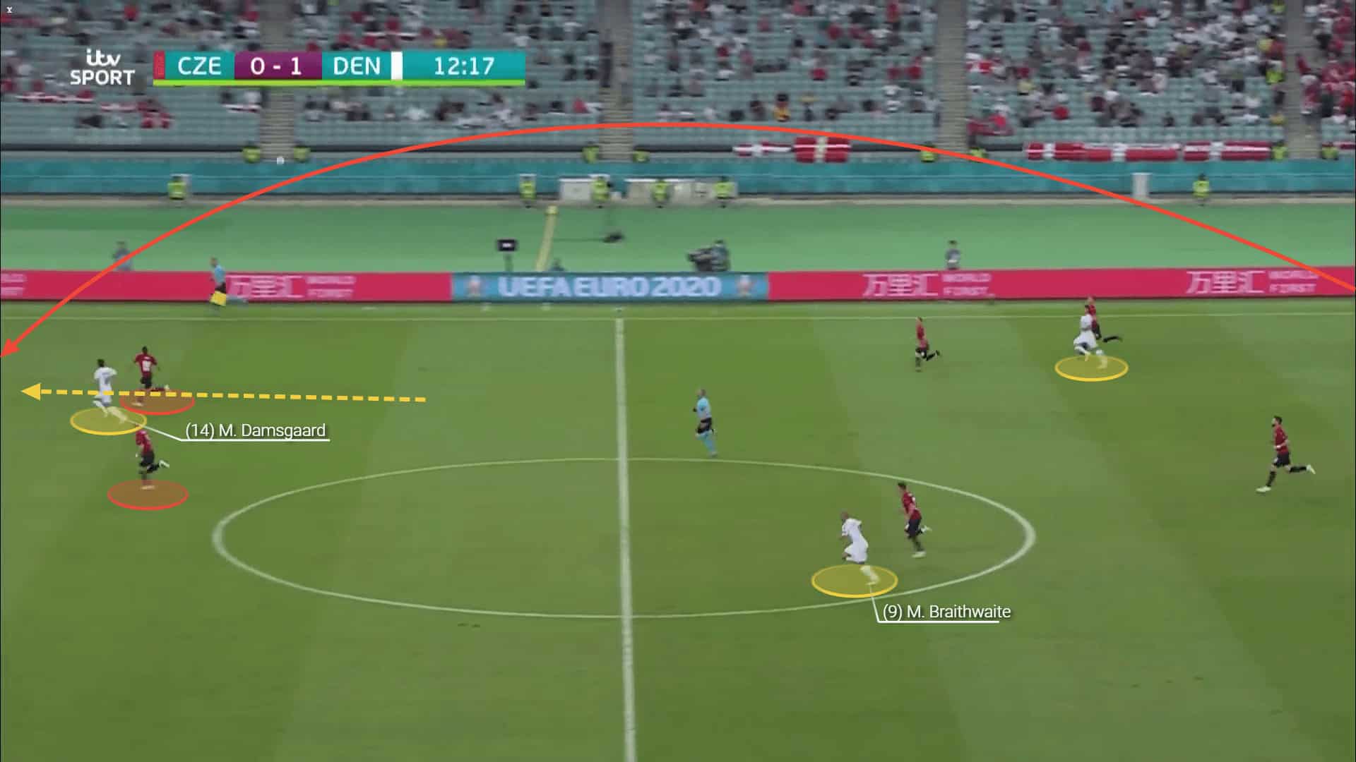 His 10.45 passes to the final third on average per 90 show his importance for Denmark’s ball progression and attacking actions. He has averaged 2.57 through balls in the tournament and is one of the main players to supply the front three with quality balls.