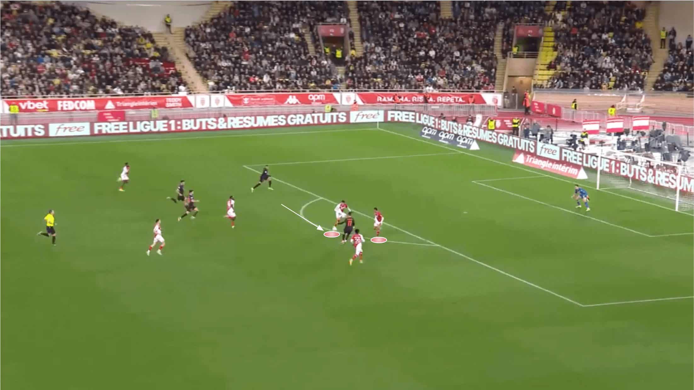 In this case, Kehrer forced a turnover inside PSG’s half, allowing Monaco to mount pressure with the ball.