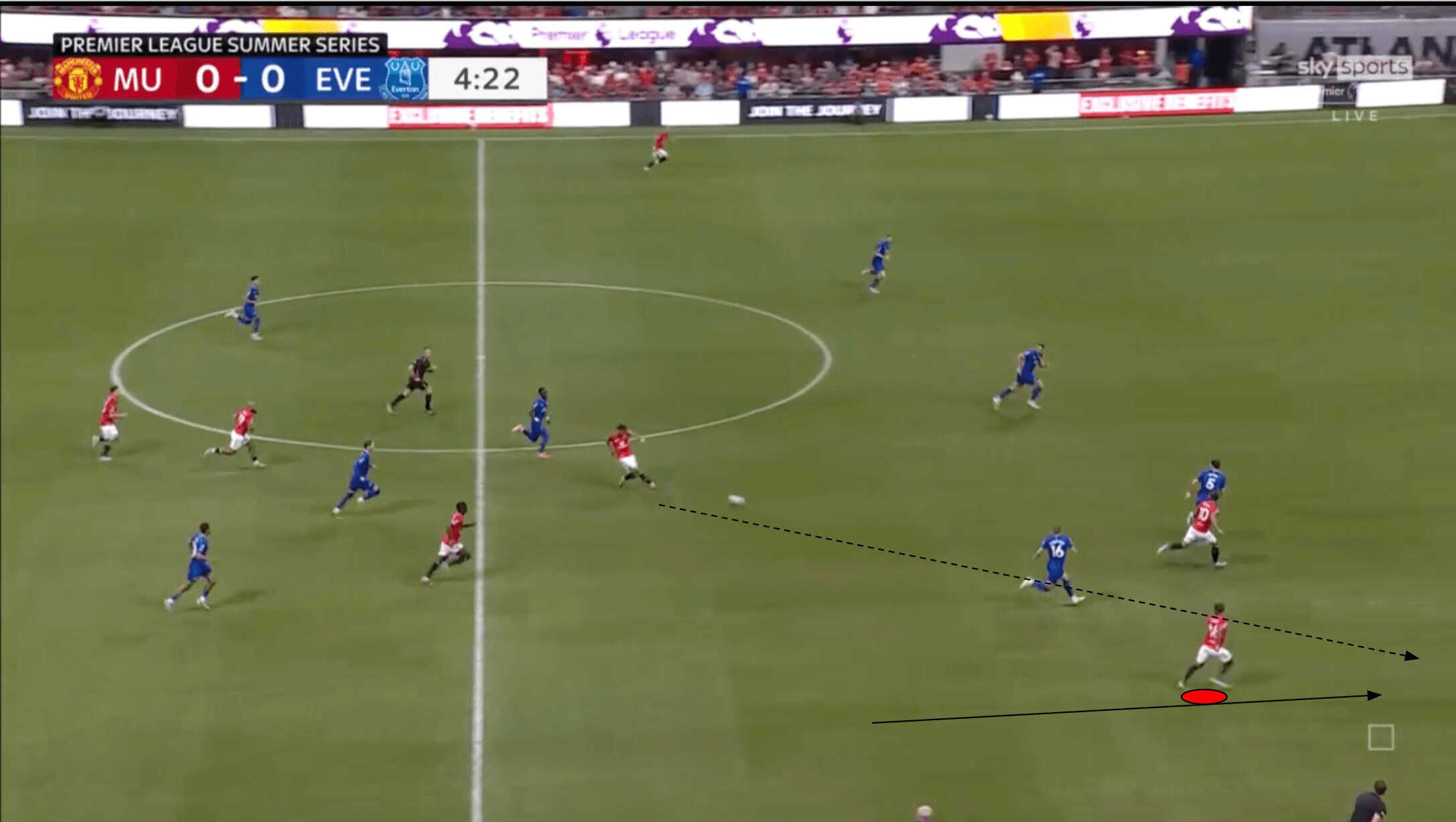 Amad Diallo is an attacking threat from wide on the right wing, also offering the potential to carry the ball inside.