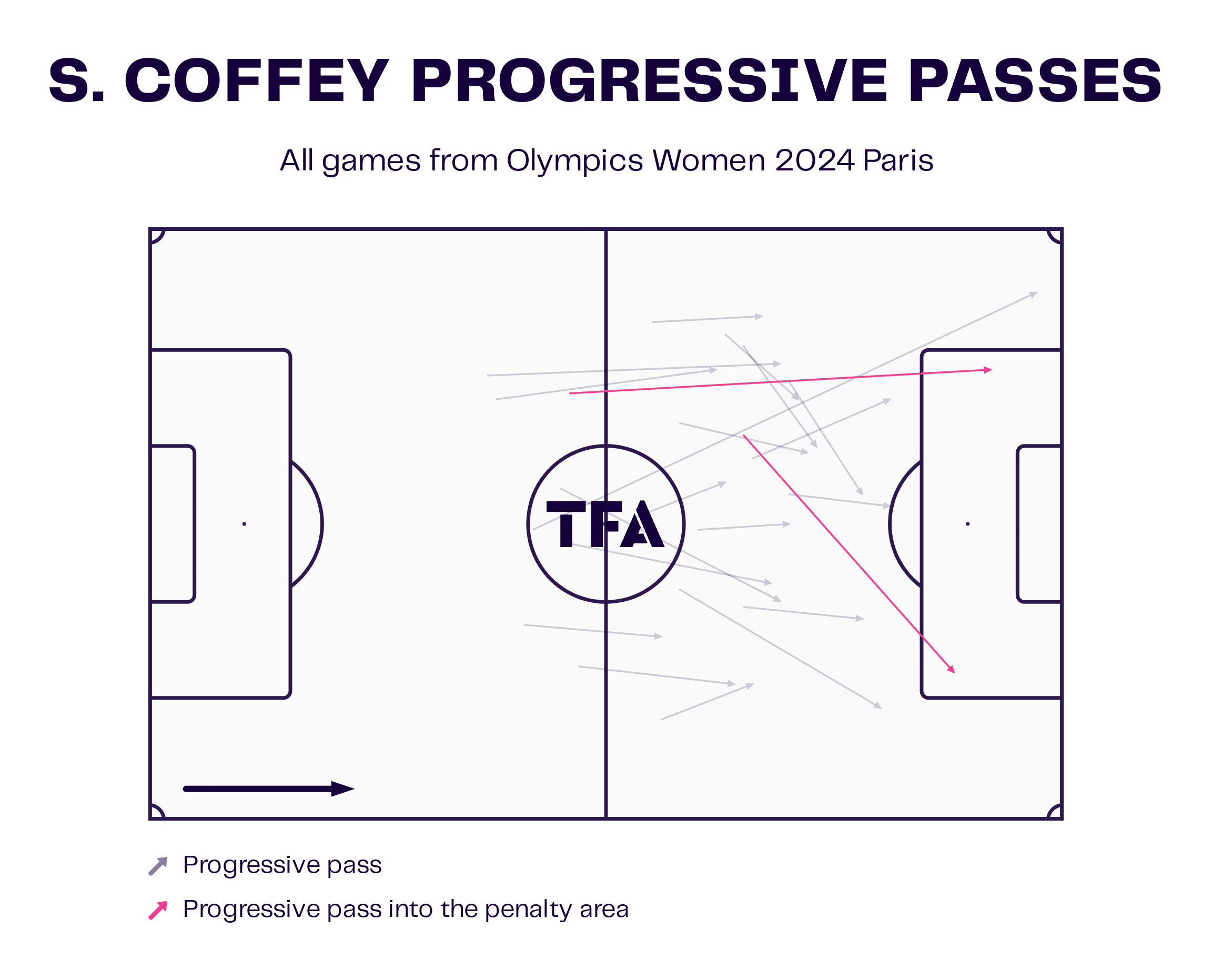 Sam Coffey’s progressive passes map for the USWNT in the 2024 Olympics.