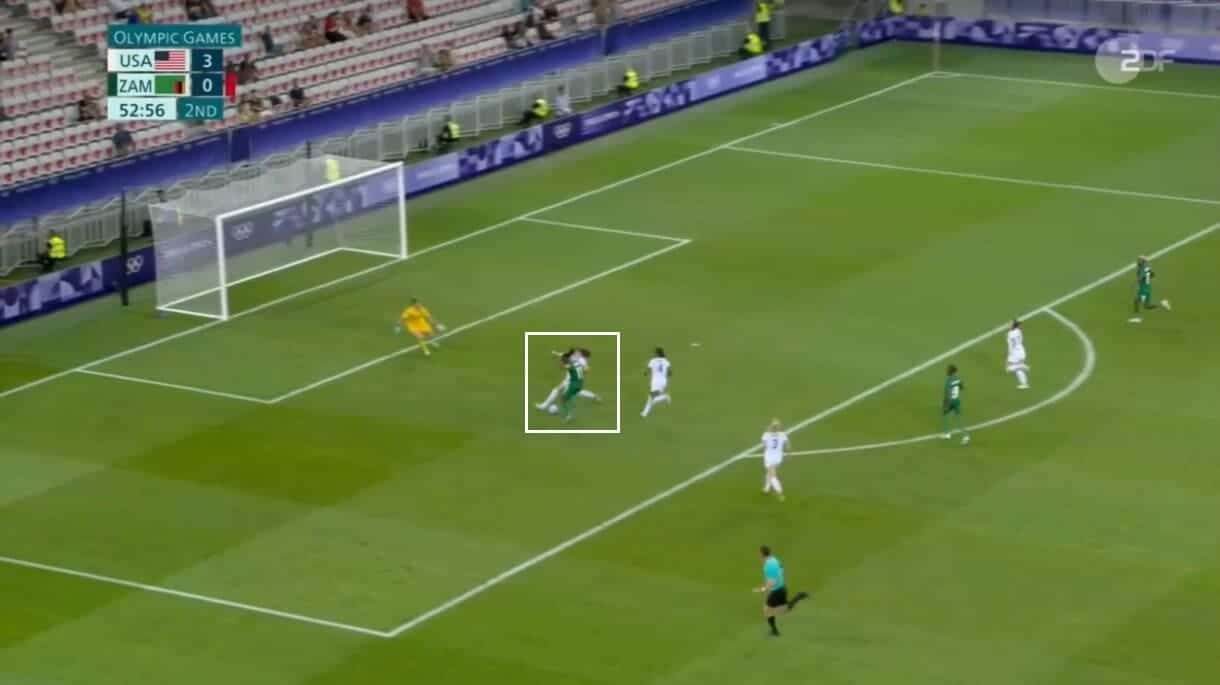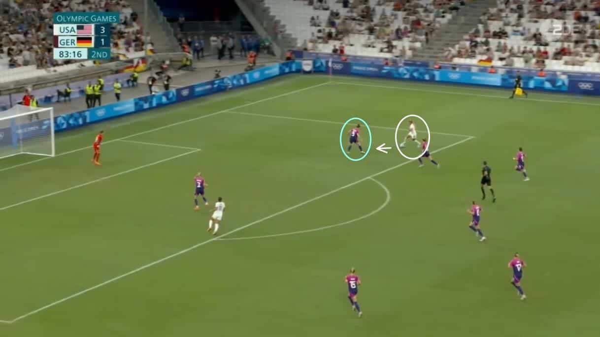 This is epitomised here by Rodman, with the Washington Spirit attacker’s 1-v-1 ability well-known among NWSL and USWNT fans and this positional shift allowing her to show that during the Olympic matches.