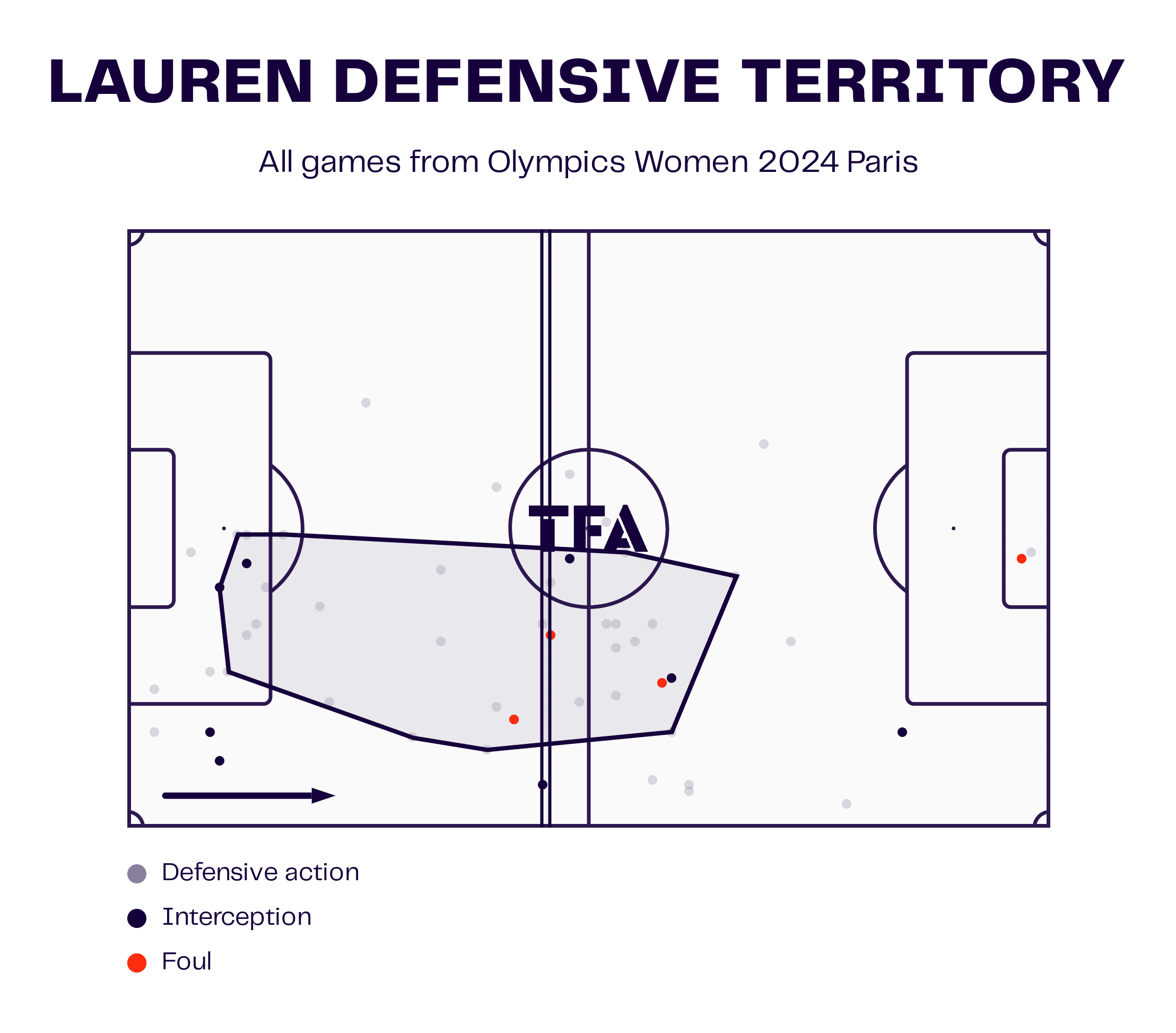 This graphic illustrates that latter point, and it is clear to see how she has been responsible for launching so many of her side’s attacks from deeper areas, with 88.3% of her passes finding their intended target.